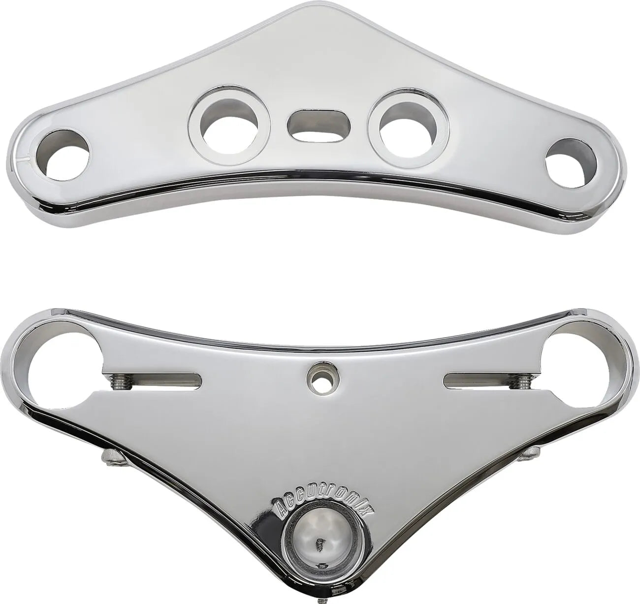 Upgrade your motorcycle's handling and aesthetics with the Accutronix 41 mm Raked Triple Tree. CNC-machined from billet aluminum, this triple tree kit offers a clean look and improved performance. Available with a 7° rake, this kit is designed to enhance the overall riding experience.
