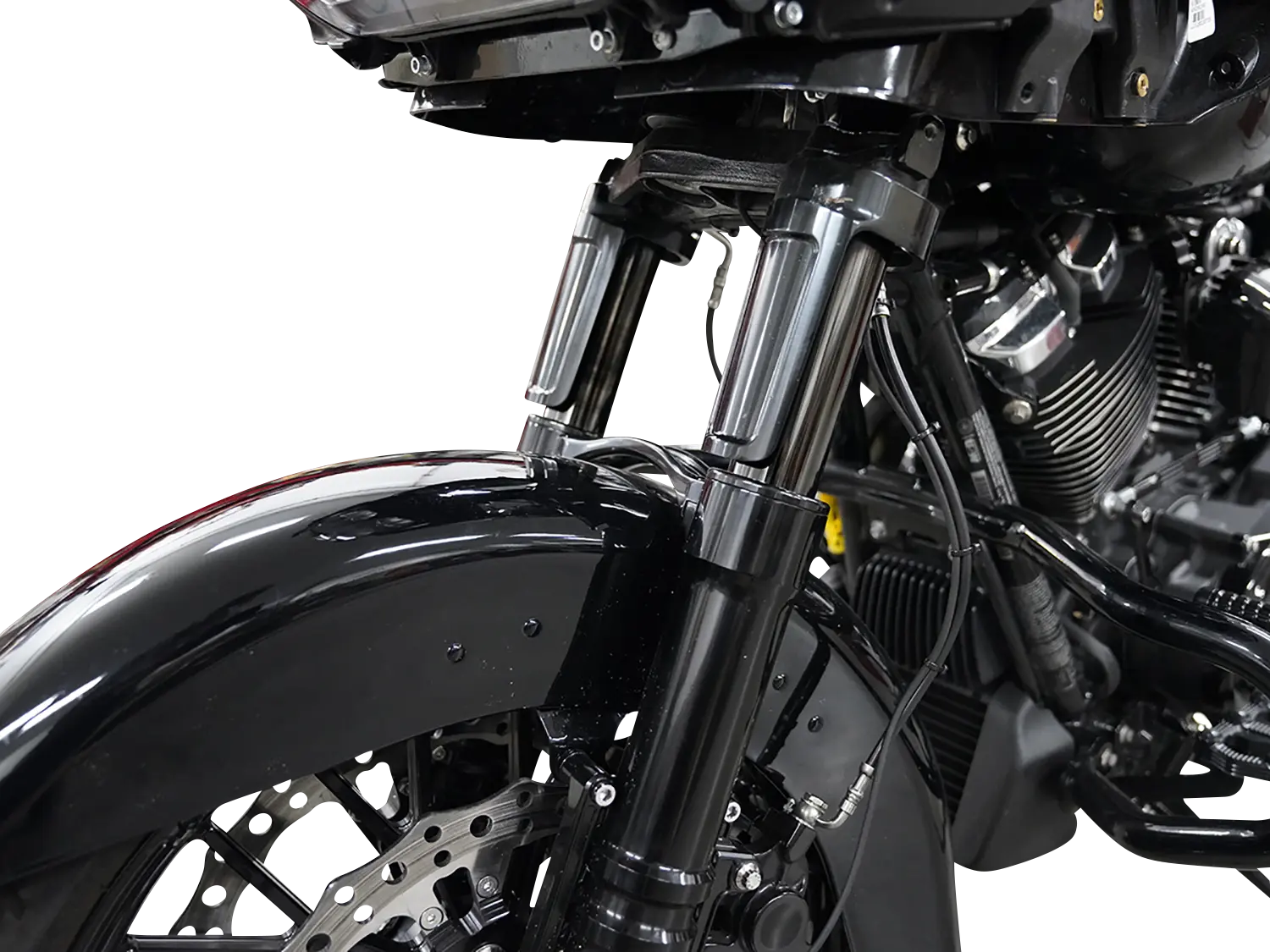These Arlen Ness Fork Tubes are designed to work seamlessly with both factory and aftermarket front suspension internals and fork legs, providing a versatile solution for customizing your ride. Specifically designed for Bagger models, these fork tubes not only enhance the aesthetic appeal but also contribute to improved handling and performance. The black finish offers a sleek, aggressive look that complements any motorcycle style. Elevate your bike's front end with these high-quality, durable fork tubes.