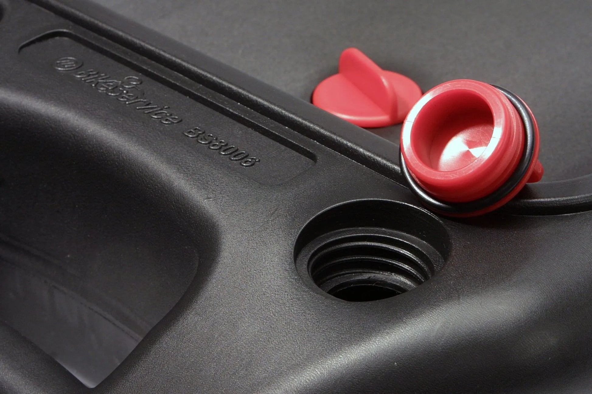 This versatile drain pan is designed to handle oil, additives, coolant, and other automotive fluids. The screw cap, equipped with a robust rubber seal, guarantees safe and leak-free transportation, preventing spills and messes. Constructed from durable, impact-resistant plastic, the pan is built to withstand the rigors of regular use. The three integrated carry handles offer a secure and comfortable grip, even when the pan is full, making it easy to move and pour fluids without hassle. The Bikeservice drain pan holds 4 liters (1.05 US gallons) of fluid. Simplify your maintenance tasks with this reliable and practical oil drain pan.