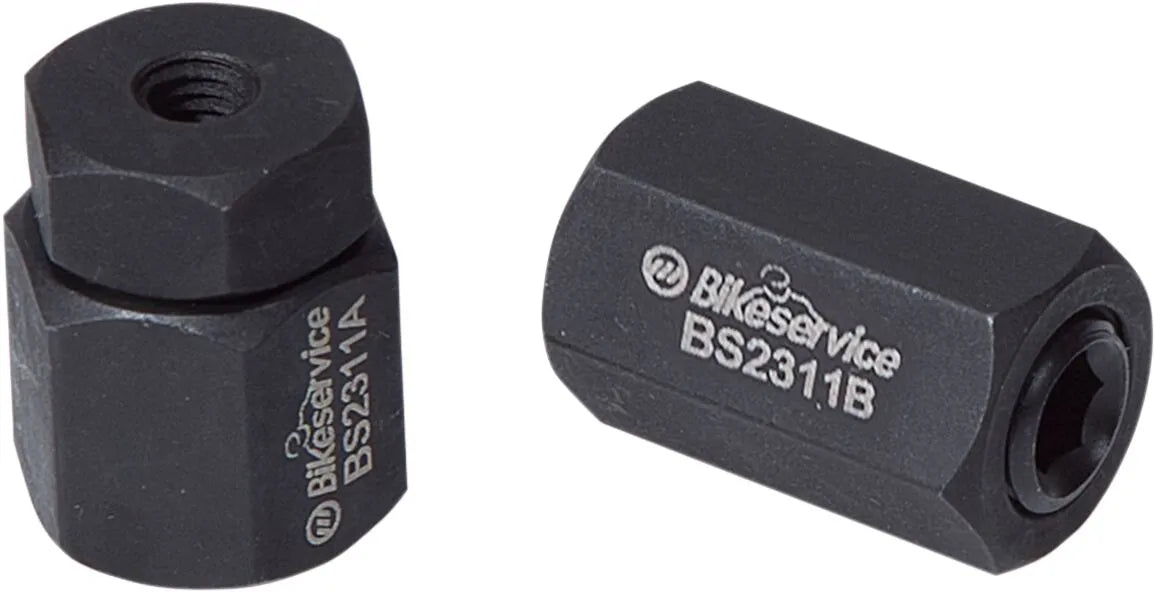This stud tool is designed to simplify the process of removing and installing studs on motorcycle engines. Its precise engineering ensures that studs can be extracted or inserted without causing thread damage, a common issue when using conventional methods. The tool's robust construction guarantees durability and long-term reliability. Suitable for a wide range of metric stud thread sizes, this set provides versatility for various motorcycle makes and models. Whether you're dealing with exhaust studs, cylinder head studs, or other engine components, this Bikeservice tool offers a professional solution.