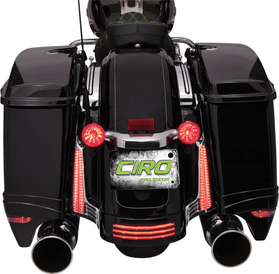 Upgrade your Harley-Davidson's rear visibility and style with the Ciro Filler Panel Lights. These lights seamlessly fill the gap between your saddlebags and fender, providing a clean, integrated look while significantly increasing your presence on the road. The bright LED lights function as running lights, brake lights, and turn signals, ensuring you're seen day and night.