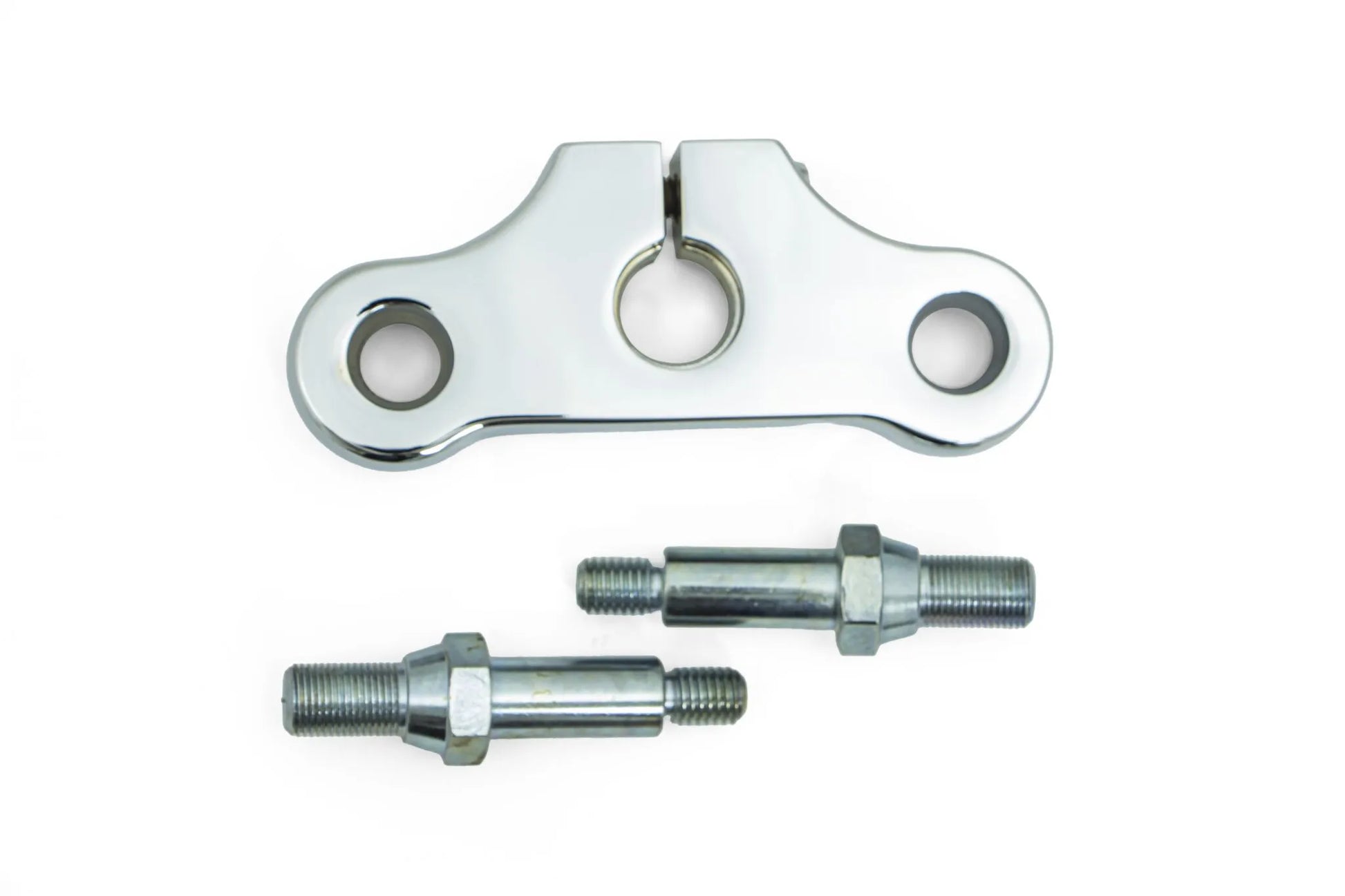 The Classic Bike Upper Triple Clamp is engineered to work seamlessly with OEM Harley-Davidson risers from Softail Springers. Featuring a 3-degree rake, this triple clamp enhances the handling and aesthetics of your motorcycle. It's specifically designed to fit with Classic Bike Springer part numbers 0810-001 and 0810-101, as well as Harley-Davidson front forks with a 3-degree rake. This ensures a precise and secure fit, improving overall ride quality and safety. Constructed from durable steel with a chrome finish, this upper triple clamp offers both style and long-lasting performance. The included studs and rigid fork leg (OEM Harley-Davidson number 4350-A) make installation straightforward and hassle-free. Also compatible with standard risers and handlebars with a 3-1/2" distance between risers.
