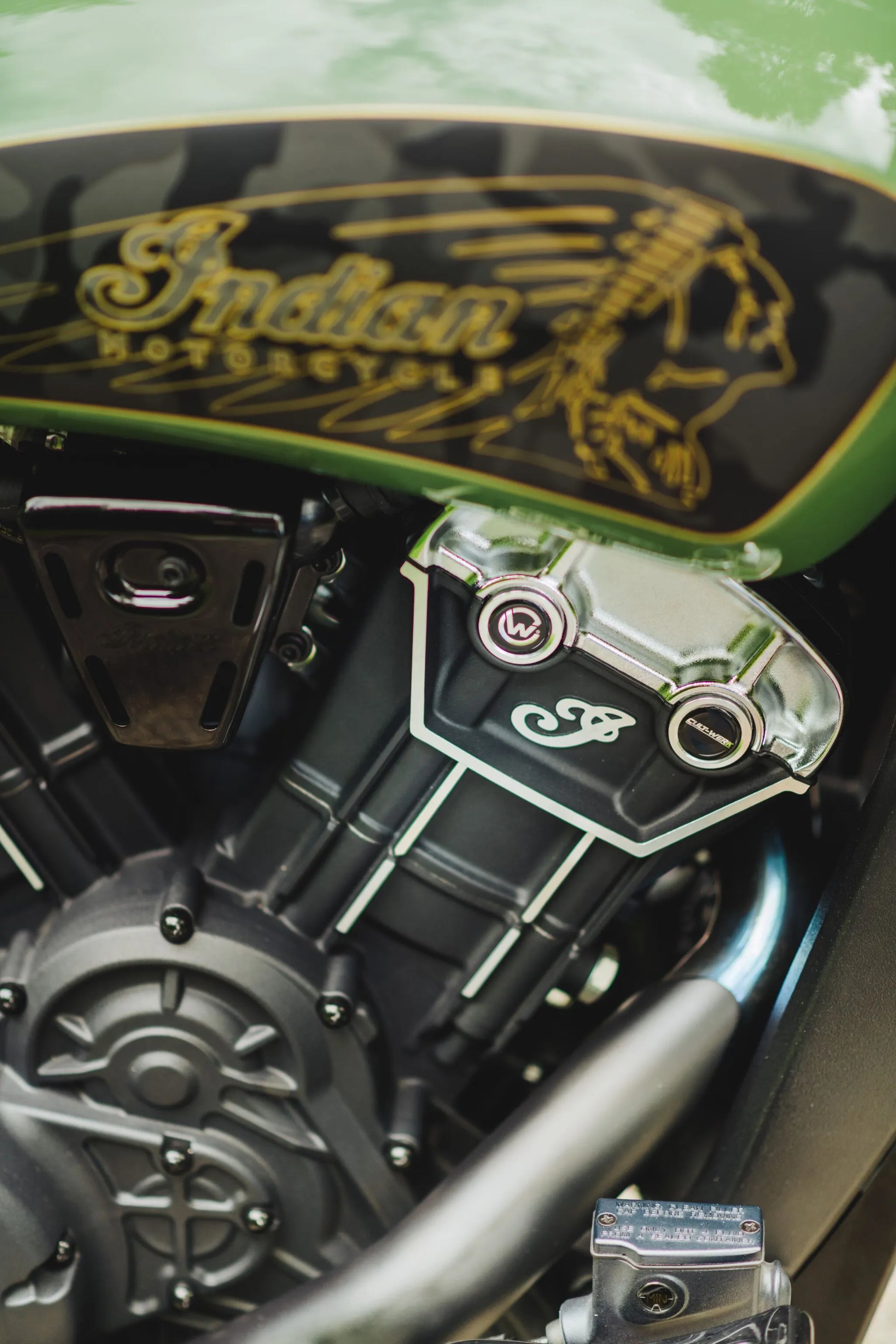 Upgrade the look of your Indian Scout Bobber with the Cult Werk Camshaft Cover. This high-quality cover provides a clean, custom appearance by enhancing the upper belt area of your motorcycle. Designed for a perfect fit and easy installation, this camshaft cover is the ideal addition to your bike.