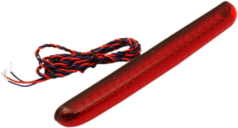 The Custom Dynamics Knight Riderz LED Light Bar features 21 high-power, dual-intensity red LEDs, providing exceptional brightness for both running and brake light functions. The sequential running light creates an eye-catching effect, while the flashing brake alert ensures maximum visibility when stopping. Installation is a breeze with the included 3M™ double-sided tape, allowing for secure and simple mounting to the rear of your motorcycle. Designed to work seamlessly with any 12 VDC system, this LED light bar requires no load equalizer or resistors, simplifying the installation process. This light bar not only enhances your motorcycle's aesthetics but also significantly improves your safety on the road.