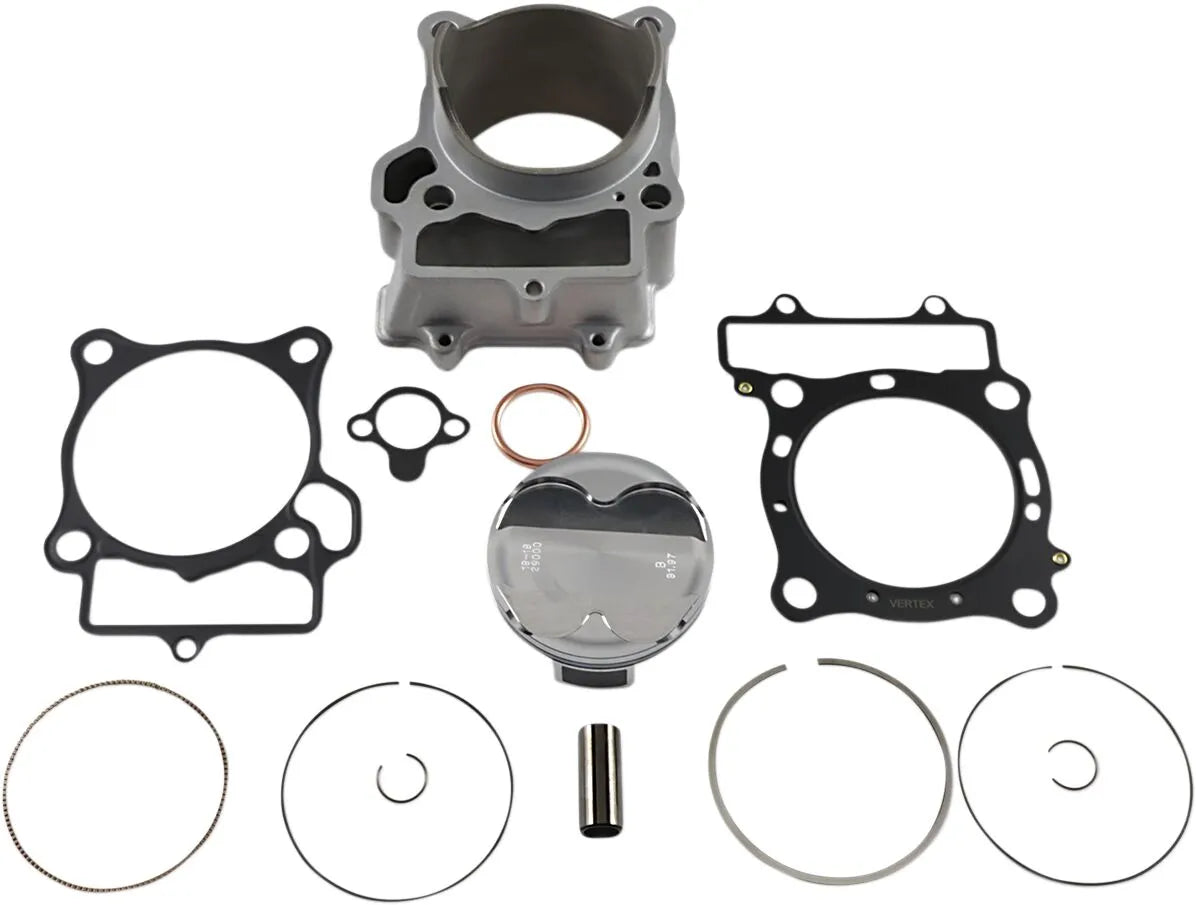 Kit includes cylinder, Vertex piston, rings, pin, clips, and gaskets. Cylinder may require machine work depending on the application (check before installation).