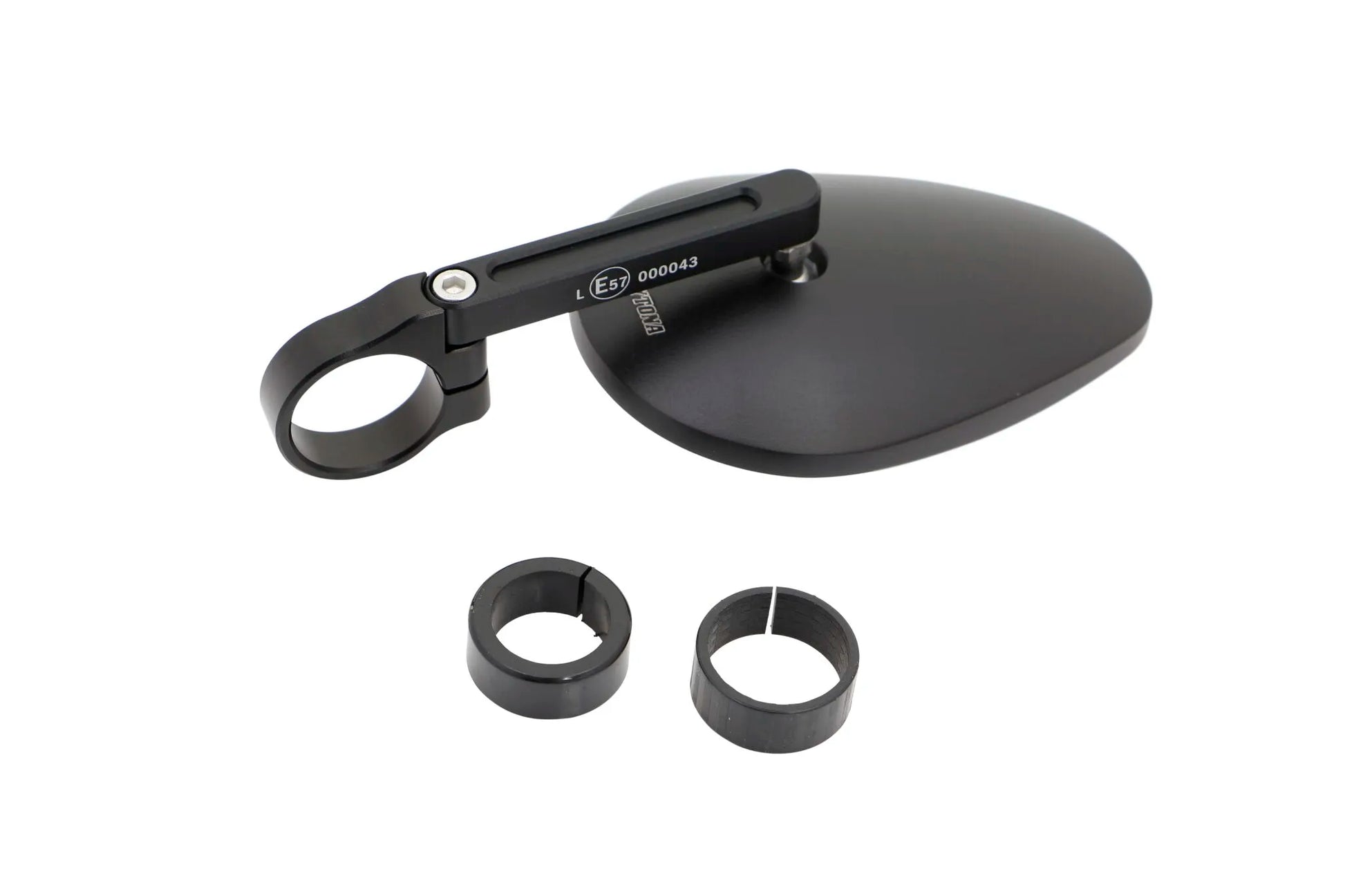 The Daytona Aluminum Bar End Mirror combines form and function, providing riders with a clear and wide field of view. Crafted from robust aluminum, this mirror is built to withstand the rigors of daily use while adding a touch of sophistication to your motorcycle. The mirror features an E-mark, ensuring compliance with safety standards. Designed for easy installation, it includes adapter rings for direct mounting onto handlebars with diameters of 7/8" (22.2mm) or 1" (25.4mm), offering versatile compatibility with a wide range of motorcycle models. Its black finish provides a sleek, modern look that complements any bike.