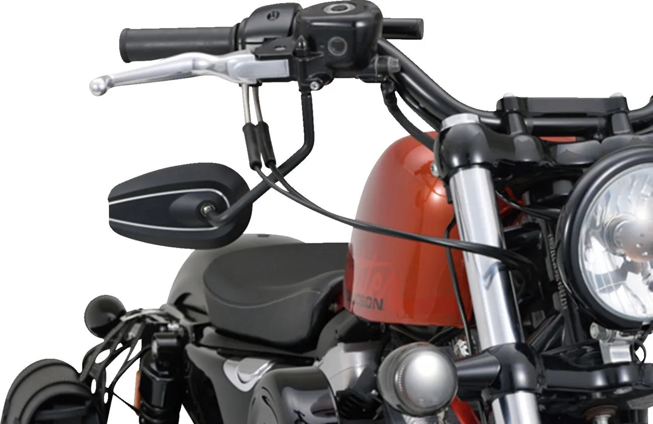 The Daytona Aluminum Black Mirror features a CNC-machined aluminum mirror head, ensuring durability and a refined finish. The steel and aluminum mirror arm provides stability and reduces vibration, offering a clear and accurate reflection. With its E-mark certification, this mirror meets stringent European safety standards. The included adapters for M10 x P1.25 (R/H thread) and Harley-Davidson motorcycles ensure broad compatibility and straightforward installation. Enhance both the look and safety of your ride with this premium side view mirror.