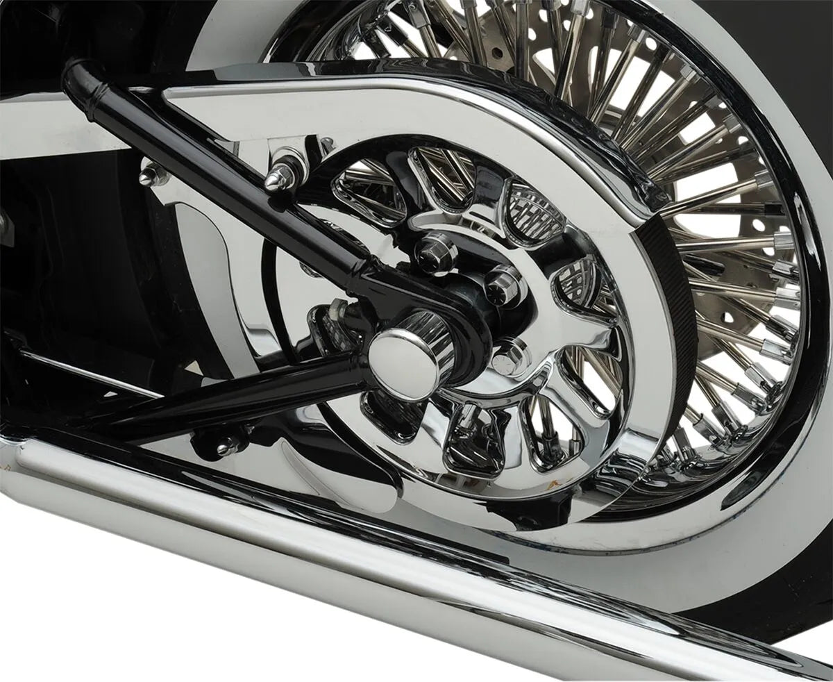 Upgrade the rear axle of your motorcycle with these stylish and durable axle caps from Drag Specialties. Crafted from high-quality die-cast aluminum, these caps not only enhance the appearance of your bike but also provide added protection.