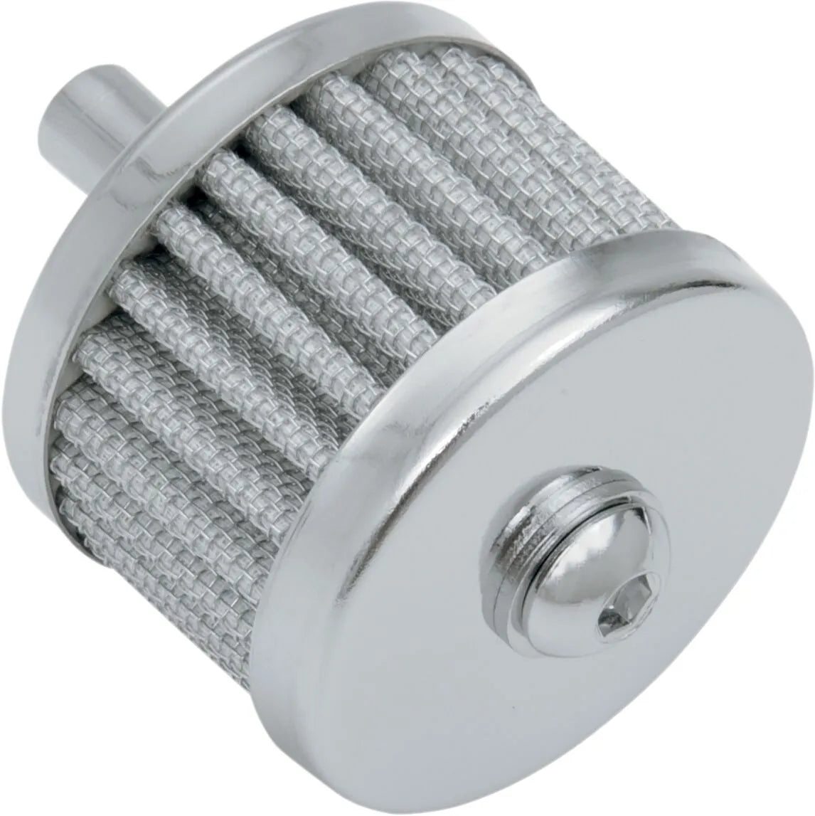 The Drag Specialties Crankcase Vent Replacement Filter is designed to provide superior filtration and maintain optimal engine performance. This filter effectively removes oil, dirt, and other particles from crankcase gases, preventing them from recirculating into the engine. Its robust construction ensures durability and long-lasting performance, even under demanding conditions. Easy to install, this filter offers a hassle-free solution for maintaining your engine's health and prolonging its lifespan. The chrome and aluminum finish provides a sleek, custom look.