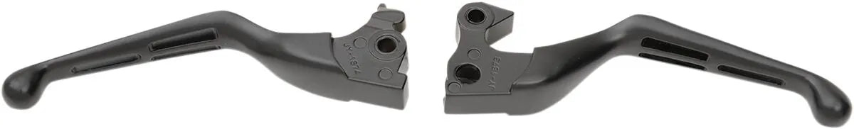 The Drag Specialties Wide Blade Lever Set is designed for riders who demand quality and performance. Crafted from high-quality aluminum, these lever sets feature CNC-machined slots for a distinctive appearance and enhanced grip. The matte black finish adds a touch of modern style to your motorcycle. Each set includes an anti-rattle clip to ensure smooth, quiet operation and clutch lever pivot bushings for longevity and consistent performance. Whether you're replacing worn-out levers or upgrading for a custom look, the Drag Specialties lever set delivers exceptional value and durability. Easy to install and built to last, these levers will enhance your riding experience.