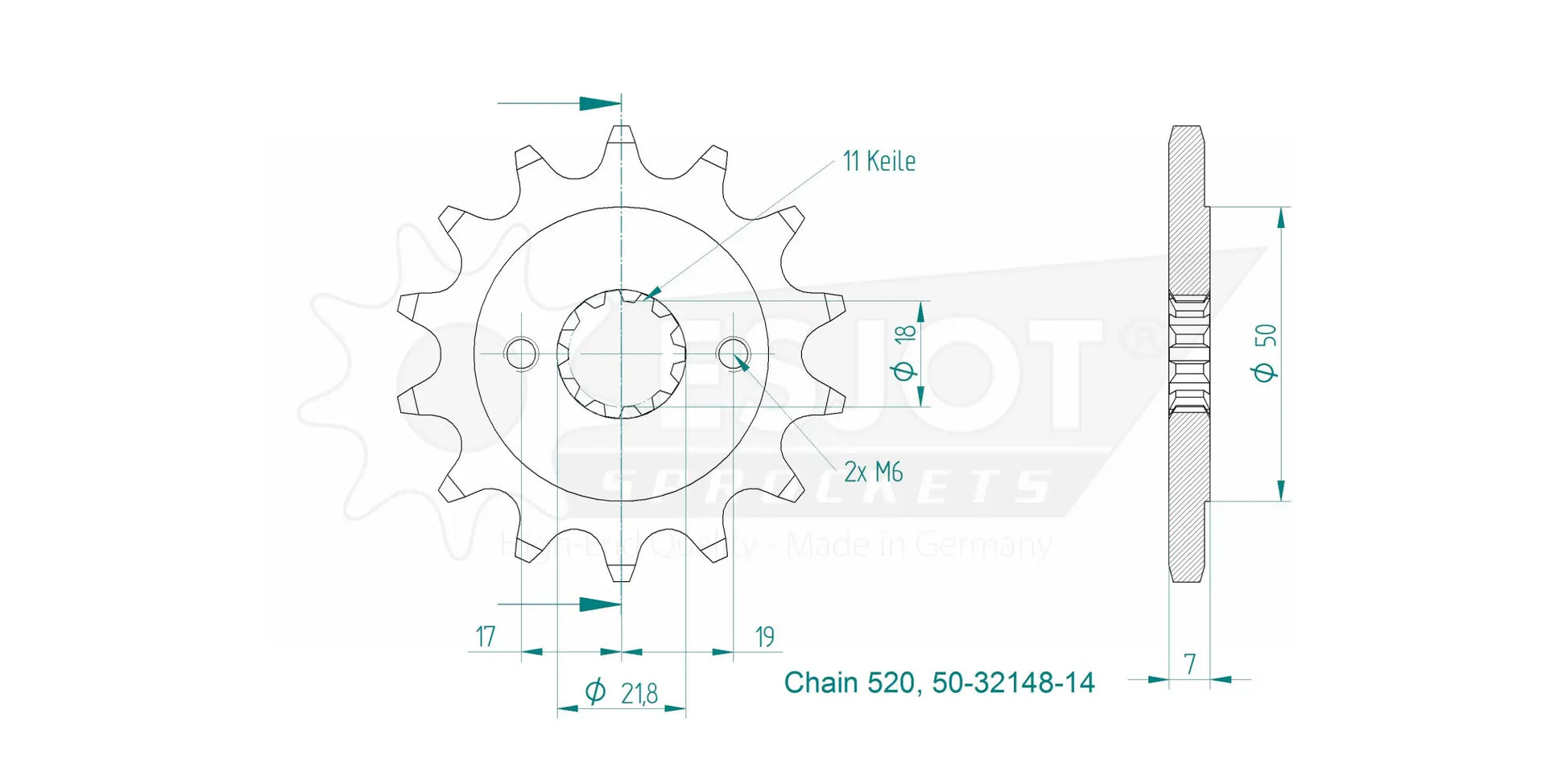 Crafted from special 16MnCr5 steel and enhanced with high-quality case hardening, this Esjot sprocket delivers exceptional strength and durability, even under the most wear-intensive conditions. Precision gearing ensures optimal power transfer and longevity. Manufactured using advanced CNC automatic lathes and state-of-the-art broaching machines, it guarantees a precise fit on the drive shaft. With concentricity and axial run-out tolerances of less than 0.1 mm, you can trust in its consistent and reliable performance. Upgrade your motorcycle's drivetrain with this top-tier Esjot 520 front sprocket.