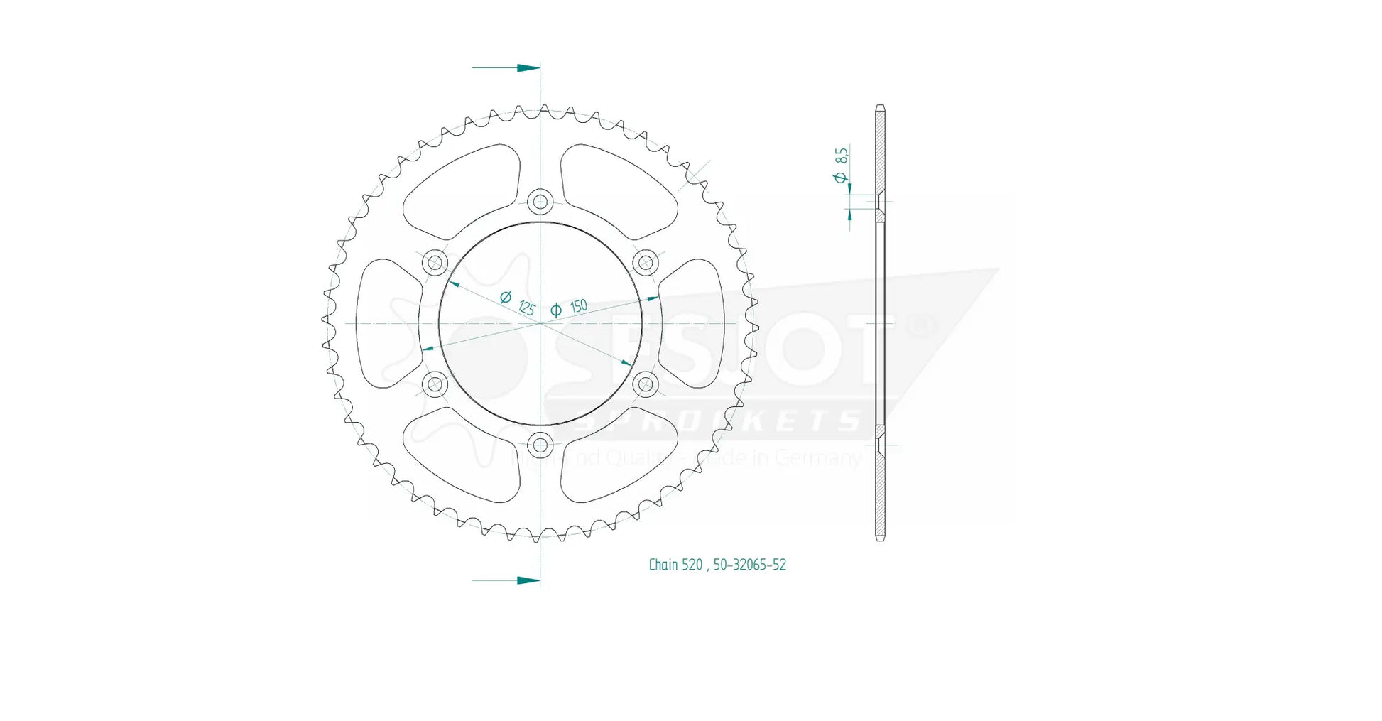 The Esjot 520 Rear Sprocket is crafted from high-quality QSTE460 steel and features a specialized surface treatment for enhanced durability and resistance to wear. Utilizing the innovative Diamond Cut 2.0 process, the toothing is exceptionally precise, ensuring optimal power transfer and smooth operation. With concentricity and axial run-out tolerances of less than 0.1 mm, this sprocket delivers consistent and reliable performance. This rear sprocket is ideal for motorcycle enthusiasts and professionals seeking a long-lasting and high-performing component. Improve your bike's responsiveness and extend the life of your drivetrain with this premium steel sprocket.