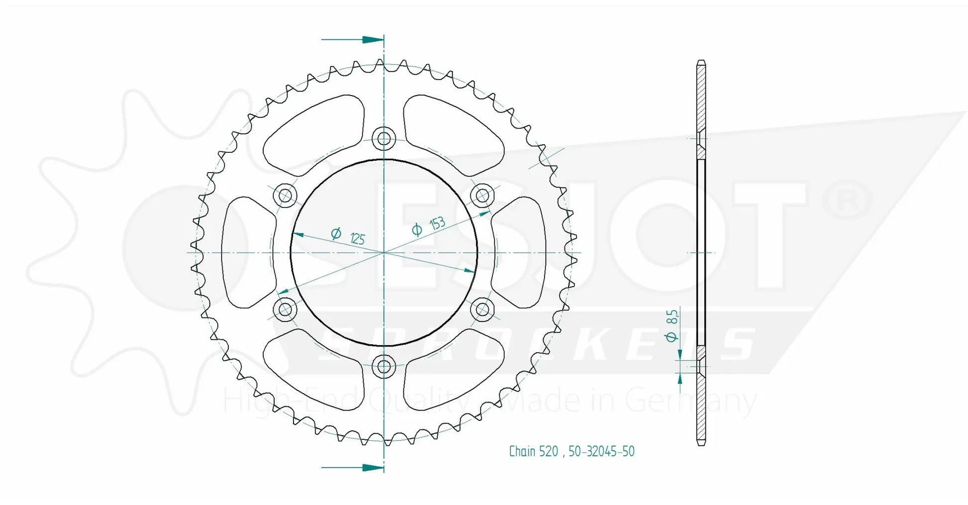 Upgrade your motorcycle's drivetrain with the Esjot 520 Steel Rear Sprocket. Engineered for superior performance and longevity, this sprocket meets and exceeds OEM standards, providing exceptional reliability under demanding conditions. Experience the difference of German engineering and precision.