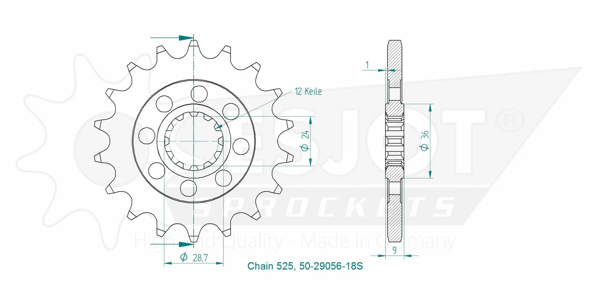 Esjot front sprockets are developed to exceed OEM requirements, positioning them among the top sprockets available worldwide. Manufactured from specialized steel and featuring high-quality case hardening, they offer unparalleled strength and durability. The precise gearing ensures optimal power transfer and reduced wear, even under the most demanding conditions. Weight optimization is achieved through lightening holes and twist-in design, specifically optimized for racing applications without compromising performance. Each sprocket is machined on CNC automatic lathes and broached on state-of-the-art machines, guaranteeing a precise fit on the drive shaft with concentricity and axial run-out tolerances of less than 0.1 mm. Experience the difference of 100% German engineering.