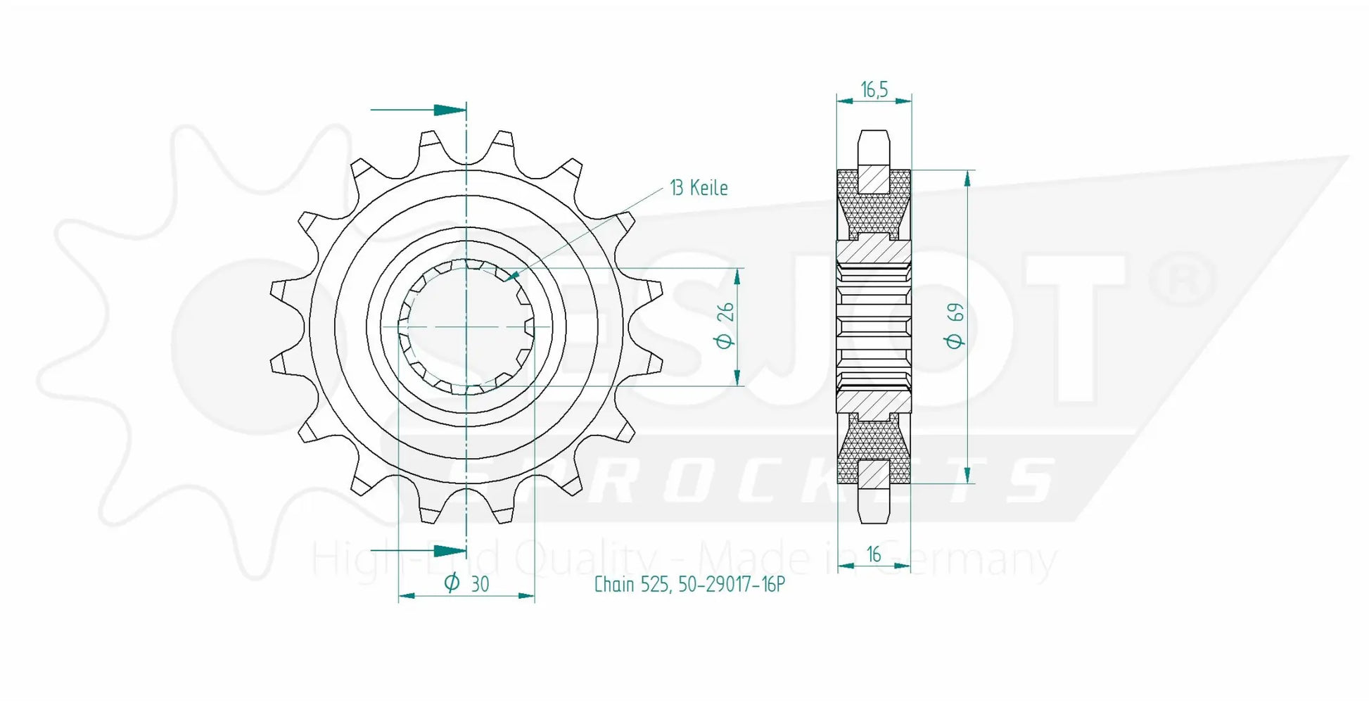 The Esjot Standard Front Sprocket 525 delivers exceptional strength and durability for demanding riding conditions. Manufactured in Germany to meet the highest OEM standards, this sprocket ensures reliable performance and precise fitment for your motorcycle.