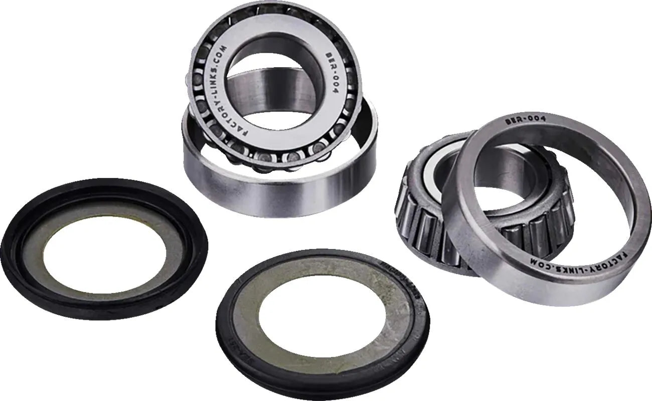 Ensure smooth and precise steering with the Factory Links Steering Stem Bearing Kit. This premium kit provides all the necessary components to fully service your steering stem with OEM quality parts, restoring optimal handling and control to your motorcycle.