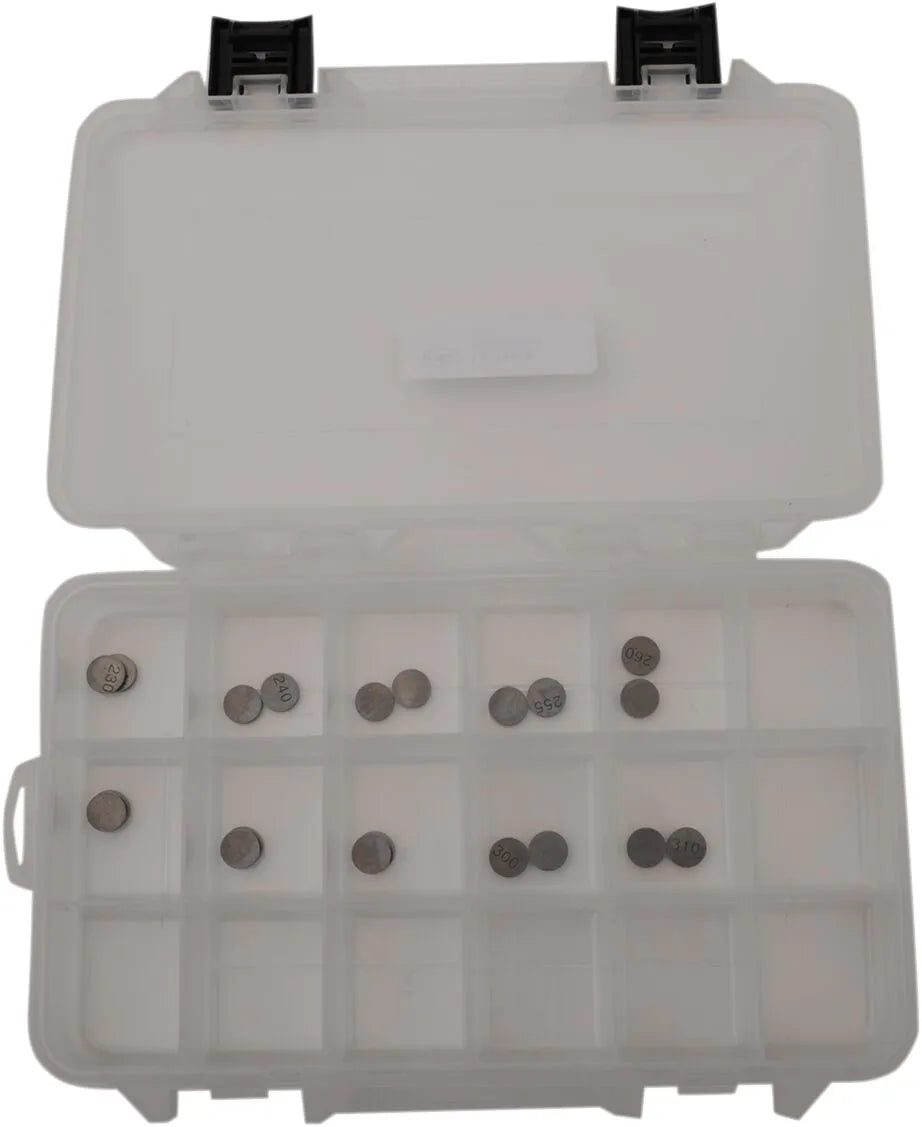 This valve shim kit is designed to offer a convenient solution for adjusting valve clearances, improving engine performance and extending engine life. Containing an assortment of shim sizes, this kit eliminates the need to order individual shims, saving you time and money. The K&L Supply shim kit includes a durable shim box for organized storage and easy access to the shims you need. The valve shims are available ranging from 2.30 mm to 3.10 mm, allowing for fine-tuned adjustments on a variety of motorcycle engines. Ensure optimal engine performance with the K&L Supply Valve Shim Starter Kit.