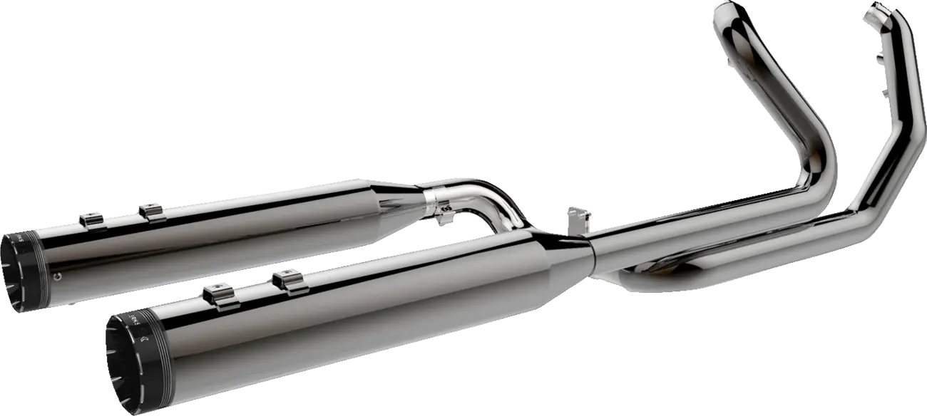 The Dominator exhaust features enlarged, interconnected headers that optimize exhaust flow, resulting in enhanced engine performance. The stepped primary headers transition from 1-3/4" to 1-7/8", further improving exhaust velocity. A full 2" left side crossover integrates seamlessly with the 4-1/2" muffler bodies, each featuring 2" inlets. The 2-1/2", 220° heat shields provide protection and style, finished in black. The removable baffles, wrapped in stainless steel wool and high-temp fiberglass, deliver a rich, mellow exhaust note. Featuring both 18 mm and 12 mm O2 sensor bungs welded into the primaries, this system offers versatility for various tuning setups. Included are heavy-duty, AccuSeal® reaction-block header-to-muffler clamps for a secure and leak-free installation. Upgrade your ride with the Khrome Werks Dominator exhaust system for unmatched performance and sound.