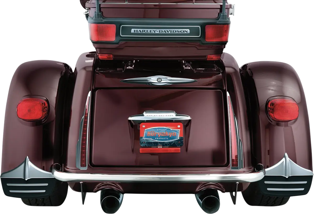 The Kuryakyn Mud Flaps are constructed from thick, flexible, and durable rubber, ensuring long-lasting performance and resistance to wear and tear from the elements. The contrasting chrome trim adds a stylish accent to your motorcycle's rear fender, enhancing its overall appearance. Designed for easy bolt-on installation, these mud flaps can be quickly mounted, saving you time and effort. They effectively deflect mud, water, and other road debris, helping to keep your motorcycle cleaner and protecting it from potential damage. These mud flaps provide a functional and aesthetic upgrade, blending seamlessly with your bike's existing design.