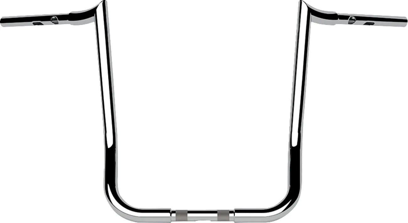 The La Choppers Prime Ape handlebar offers superior comfort and control. Measuring 32 mm (1-1/4") in diameter, this handlebar features a 40.5 cm (16") rise, a 97 cm (38") width, and a 28 cm (11") pullback/sweep, providing an optimal riding position. It's slotted for internal wiring, ensuring a clean and streamlined appearance. The handlebar is also notched for Throttle-By-Wire (TBW) capability and features 3-1/2" on-center knurling for secure mounting. Constructed from high-quality steel with a chrome finish, this handlebar not only looks great but also offers lasting durability. It accepts H-D OEM heated grips for added comfort in colder conditions. Upgrade your ride with this premium handlebar that combines style, comfort, and performance.