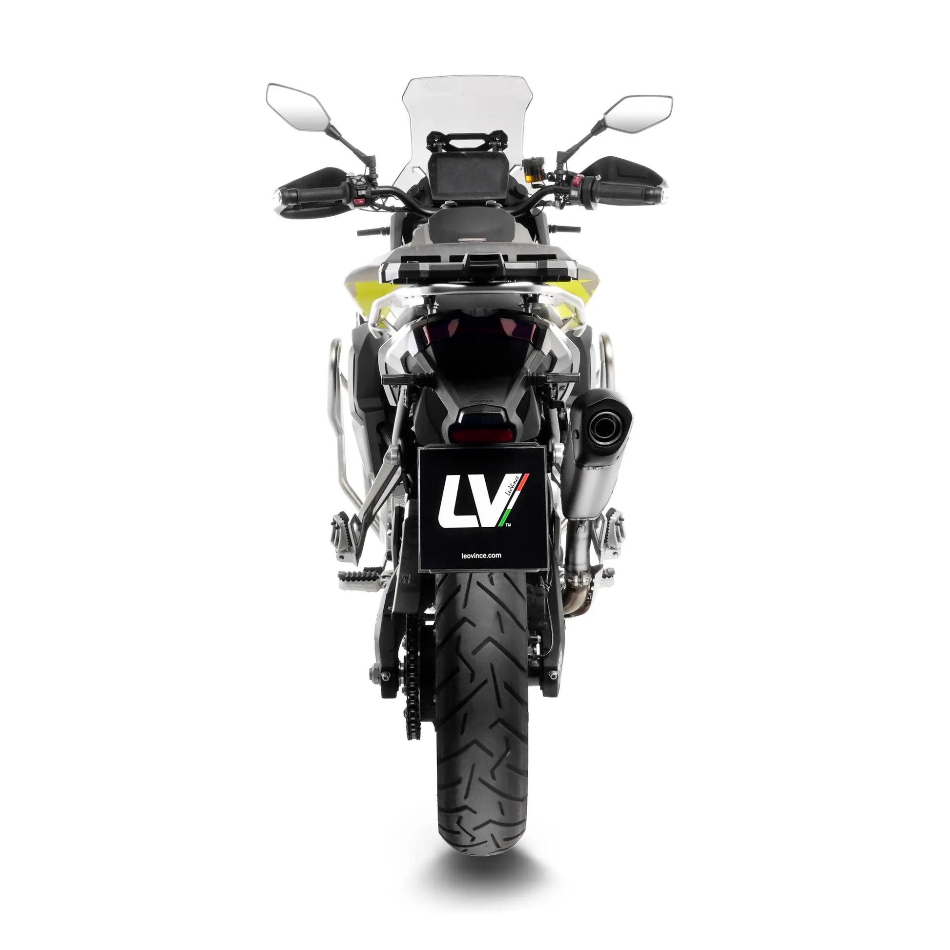 Crafted for adventure bikes, the LV-14 silencer incorporates high thermal resistance, sound-absorbing materials, hand-assembled to produce that classic LeoVince sound. The AISI 304 stainless steel construction ensures lasting performance, while the carbon fiber end-cap with matte finishing adds a touch of style. Hand-made TIG welds by skilled technicians guarantee strength and reliability. Installation is simplified with the included stainless steel or carbon fiber bracket. The laser-etched LV logo and LV aluminum plate certify its authenticity and quality. Upgrade your bike's performance and aesthetics with the LeoVince LV-14 slip-on muffler and enjoy the roar of power.