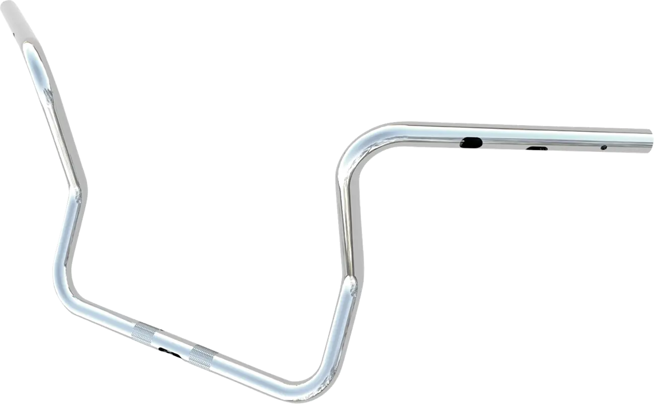 The Magnum Shielding Caliber Handlebar is CNC mandrel bent to ensure an accurate fit and features comfortable wrist angles for enhanced riding comfort. Constructed with machined control mounts (not swaged) and laser-cut, burr-free holes and slots, this handlebar is designed for internal wiring and electronic throttle control. Pre-loaded with E-Z pull-thru sleeving, wiring installations become significantly easier. With a 1-1/4" diameter and a 1" clamping area, this handlebar works with standard controls, including hydraulic clutches. The knurled center provides a secure grip, and the chrome finish adds a touch of style to your motorcycle. Ideal for Bagger and Ape Hanger styles, these handlebars improve your bike's aesthetics and handling. Whether you're looking for improved comfort, better control, or a custom look, the Magnum Shielding Caliber Handlebar delivers on all fronts.