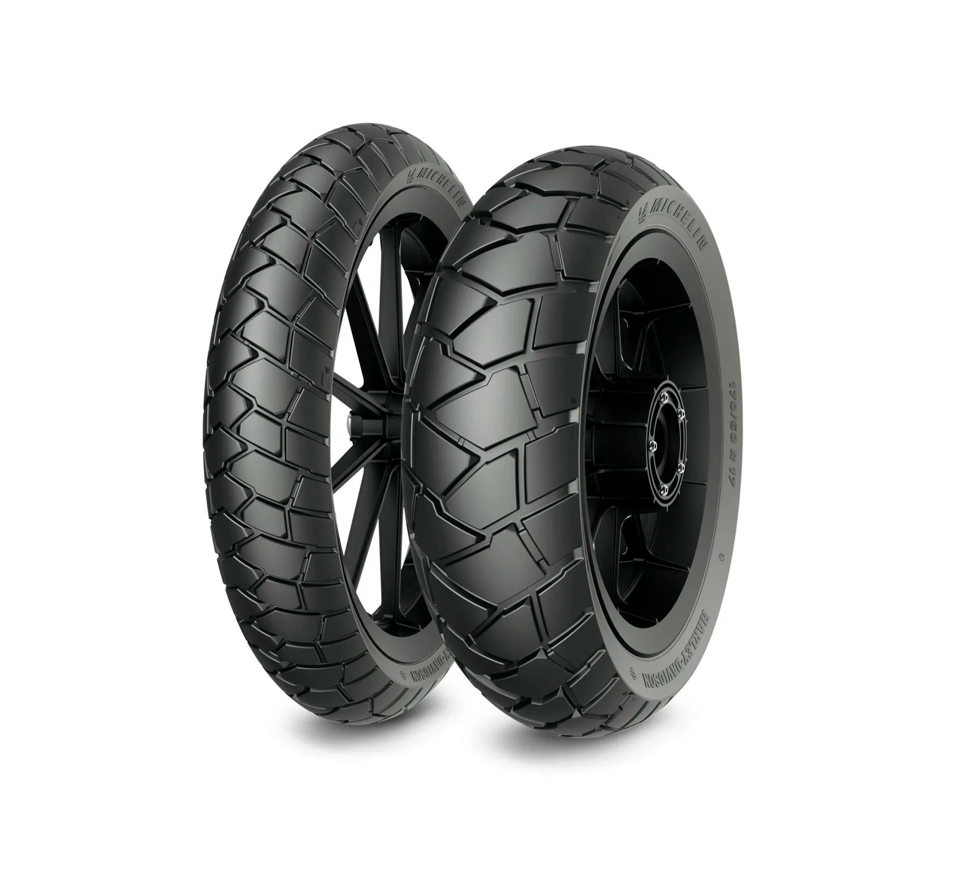 Experience a new level of on-road stability thanks to the integration of MICHELIN Bridge Block Technology™ and Michelin 2CT+ Technology™ in the rear tire. Michelin's innovative 2CT and 2CT+ technology, combined with an all-new tread pattern and optimized profile, ensures precise handling and consistent performance mile after mile. The fully grooved geometric tread pattern delivers uncompromising off-road traction, providing the confidence you need to tackle any terrain. The 120/70R19 Michelin Scorcher Adventure front tire will enhance your riding experience, offering a perfect balance of stability, handling, and traction for both on and off-road adventures.