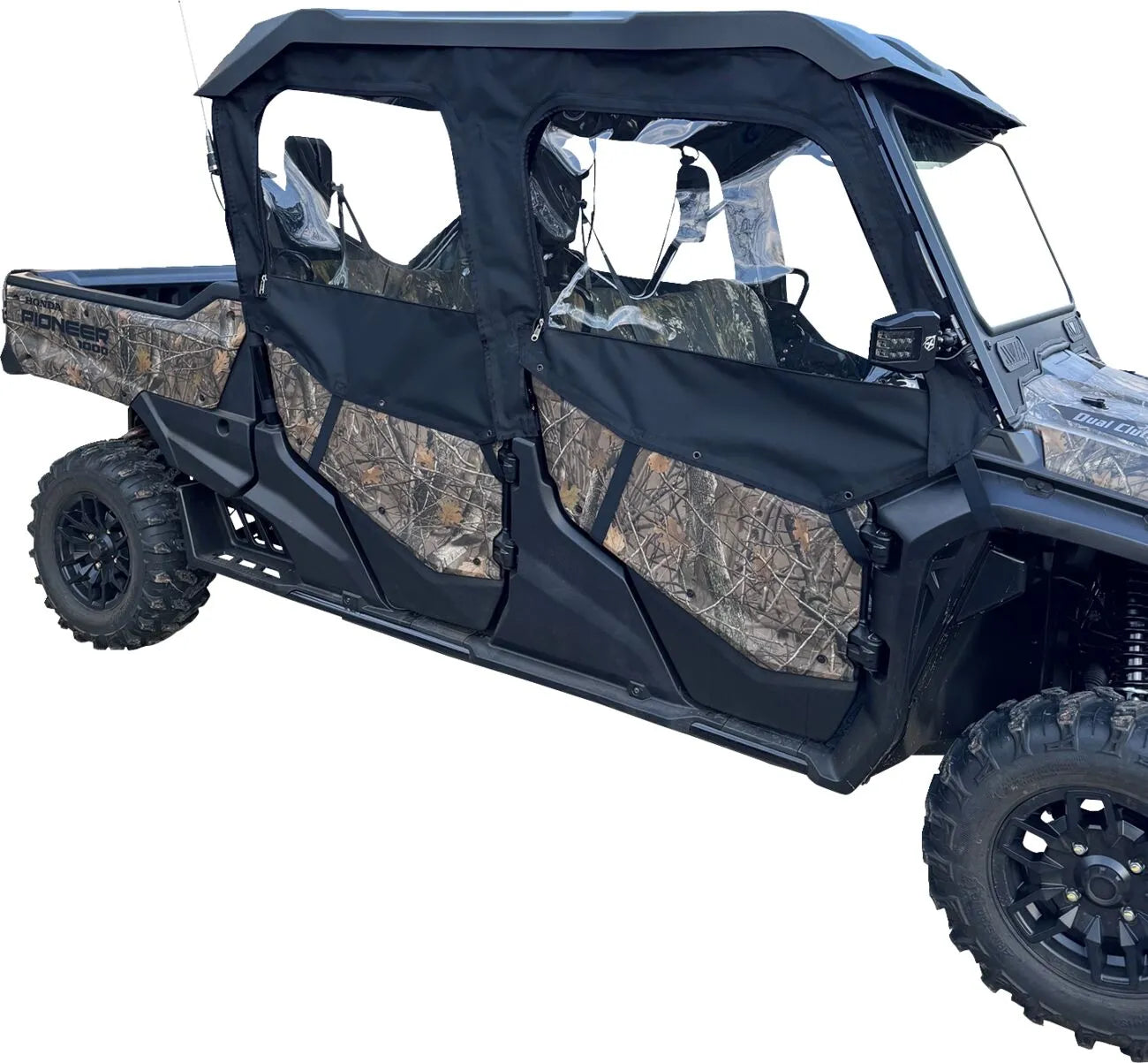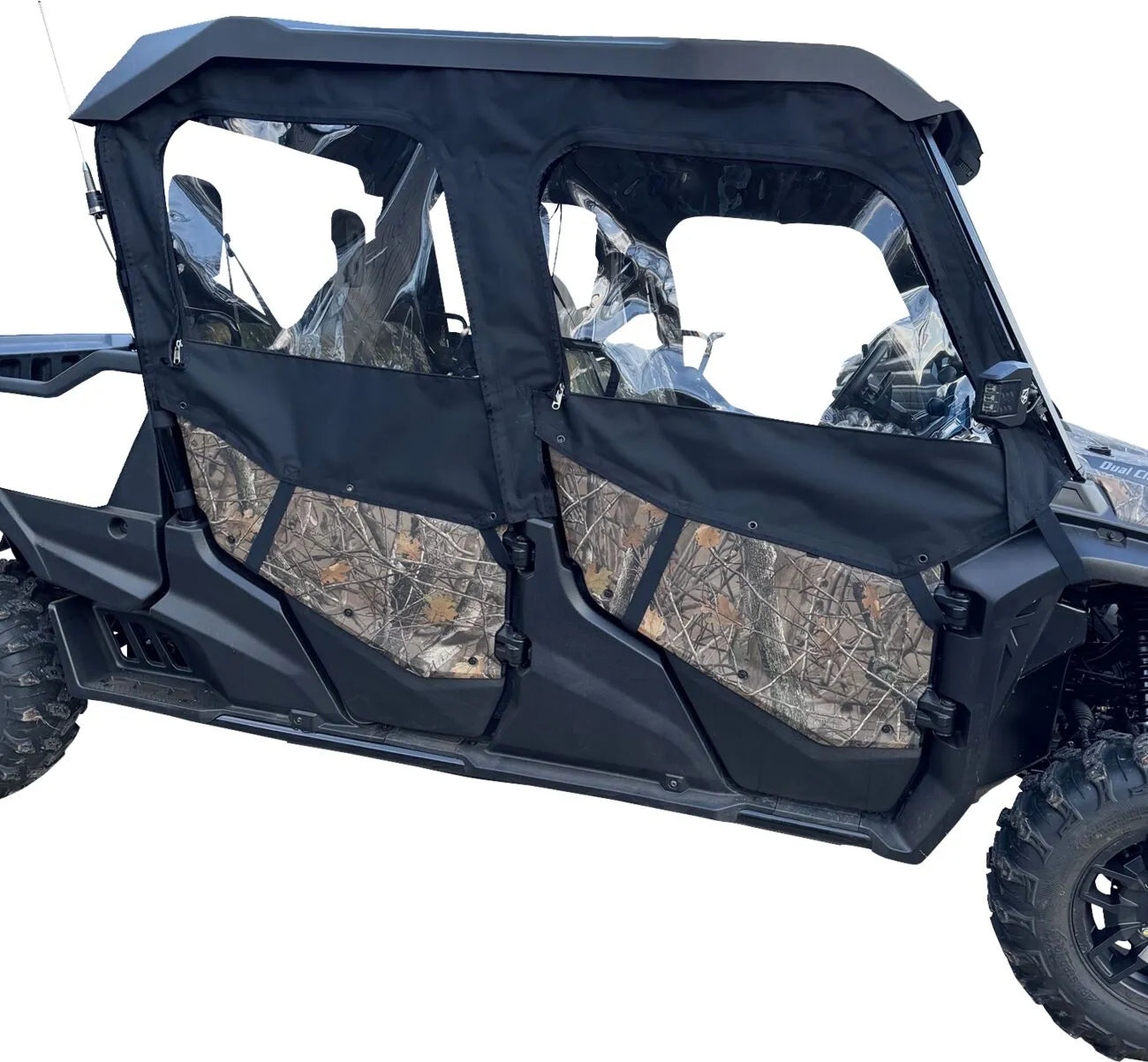 - Doors can be rolled up and secured or completely removed for versatile use in varying weather conditions.