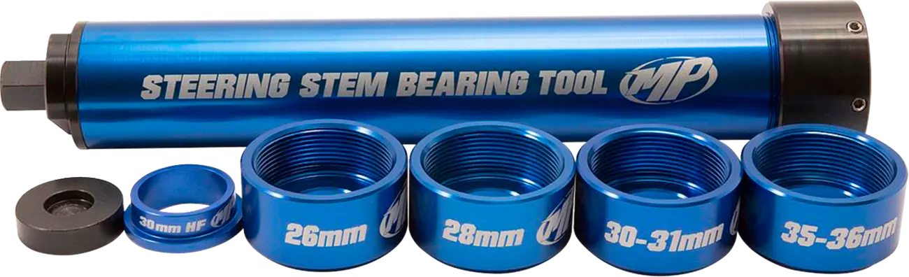 Ensure smooth and precise steering with the Motion Pro Steering Stem Bearing Tool. This tool simplifies the removal and installation of tapered roller bearings at the base of your motorcycle's steering stem, providing a professional finish every time.