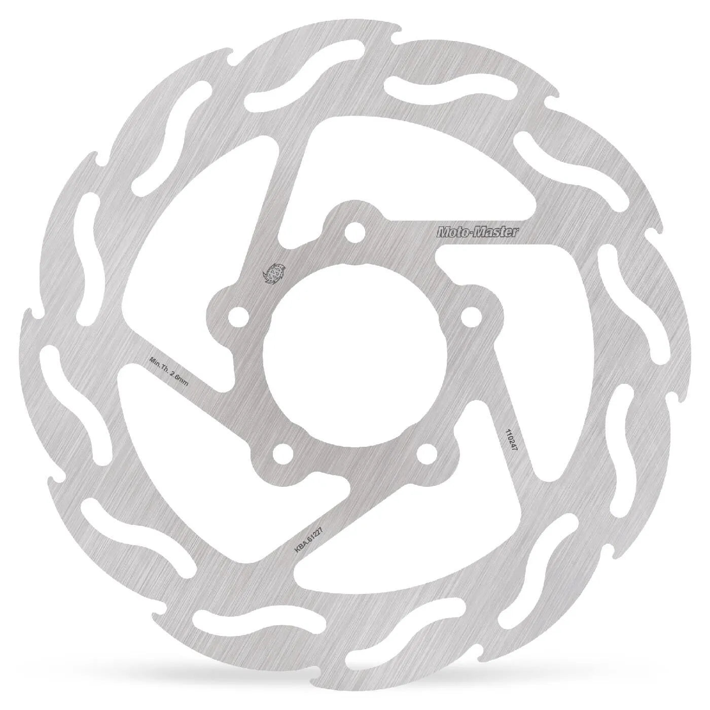 The Moto-Master Flame Series Rotor is engineered for superior braking performance and durability. The innovative flame design not only looks aggressive but also ensures optimal heat dissipation, preventing brake fade and maintaining consistent stopping power. The precision double-ground surface provides excellent rider feedback, eliminating lever pulsation and delivering a smooth, controlled braking experience. This rotor's design promotes equal brake pad contact throughout the entire rotation, ensuring linear braking action. Compatible with all types of brake pads, the Moto-Master Flame Series Rotor is a direct bolt-on upgrade that enhances your motorcycle's braking capabilities.