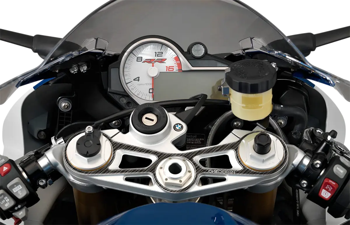 Upgrade and protect your BMW motorcycle with the Onedesign Yoke Protector. This high-quality resin protector not only shields your bike's yoke from scratches and wear but also adds a touch of modern style with its carbon fiber graphic.