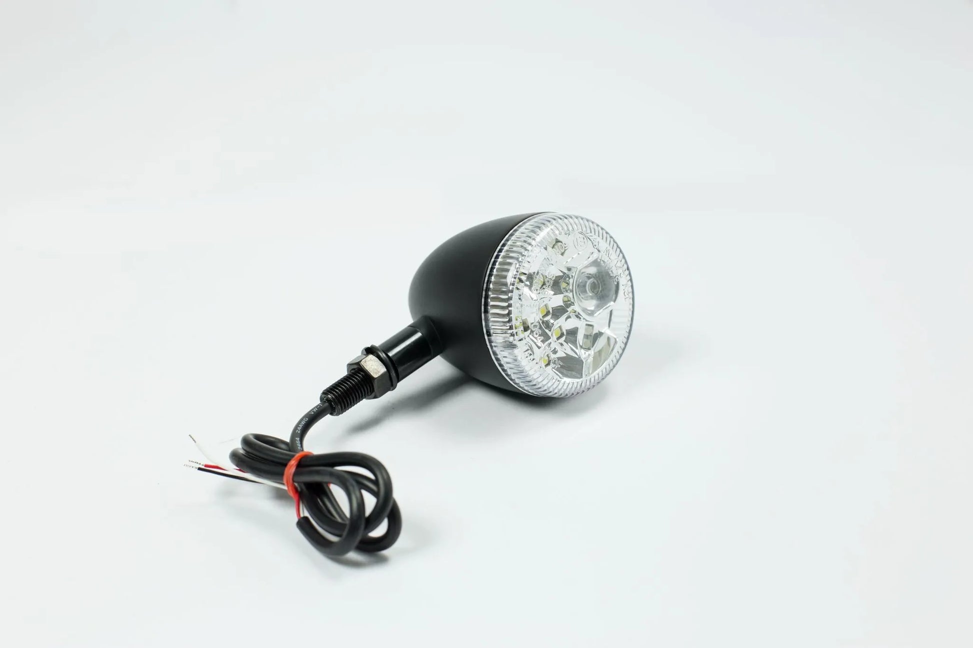 The Parts Europe E-Marked Front Indicator Light combines style and functionality. The satin black housing and clear lens offer a sophisticated look while ensuring optimal light output. The integrated position light enhances visibility, increasing safety on the road. These 2-in-1 LED turn signals are E-Marked, guaranteeing compliance with European safety standards. Designed for bolt-on mounting at the front of your motorcycle, these indicators provide a seamless and secure fit.