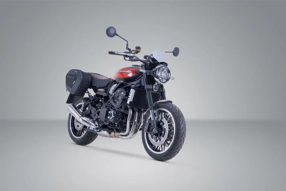 The high version of the PRO BLAZE saddlebags was specially developed for motorcycles with a high exhaust pipe. Due to the raised position, the bags are not affected by the heat emitted from the exhaust. SW-MOTECH has manufactured these bags from lightweight and dimensionally stable EVA material. The cover, made of particularly UV-resistant 1680D nylon, protects luggage from splashing water and dust. Developed specifically for sporty motorcycles, the saddlebags have a minimal effect on driving characteristics. When travelling without luggage, the removable support arms can be detached with a simple step, leaving only inconspicuous holders behind on the bike. The bike-specific developed removable support arms, a powerful hook and loop fastener and an additional safety belt with click fastener ensure the best grip and prevent the bags from swinging or flapping - even at high speeds. BLAZE support arms: New improved locking mechanism. Easy attachment of the brackets, even when wearing gloves. Integrated colour indicator shows when the bracket is securely seated in the holder. One-time mounting of the bike-specific, inconspicuous brackets for the removable support arms. Removable support arms attachable and removable in a few simple steps. Material: Stainless steel / Polyamide. Colour: silver / black. Total Weight: appr. 1,2 kg / appr. 2.7 lb. Saddlebags PRO BLAZE H: Specially designed for motorcycles with a high-mounted original exhaust. PRO BLAZE saddlebags with bike-specific support arms allow you to convert sporty bikes to touring motorcycles in seconds. Light weight and sporty look. Side walls made of dimensionally stable, laminated EVA plastic. Made from durable, highly UV-resistant 1680D ballistic nylon with water resistant interior coating. A powerful Velcro strap additionally secures the left and right saddlebags and offsets the weight of the luggage. Upper side of the Velcro strap covered with anti-slip material for a secure hold on the passenger seat. Zippered volume expansion. Main pocket is loaded from the top. Outer pocket with covered zipper. MOLLE attachment made of sturdy Hypalon material on the front for accessory bags. Practical carrying handle. Reflective details for more safety in traffic. Material: 1680D ballistic nylon. Colour: black / anthracite. Size: 46,0 x 18,0 x 32,0 cm / 18.1 x 7.1 x 12.6 in. Total Weight: appr. 1,5 kg / appr. 3.3 lb. Total Volume: 15,0-20,0 l (each bag). Scope of delivery: 2 x Saddlebags PRO BLAZE H, 2 x BLAZE support arms, 2 x waterproof inner pockets, 1 x Paint protection film, Mounting instructions & Mounting material. 1680D Ballistic Nylon, Stainless steel & Polyamide.