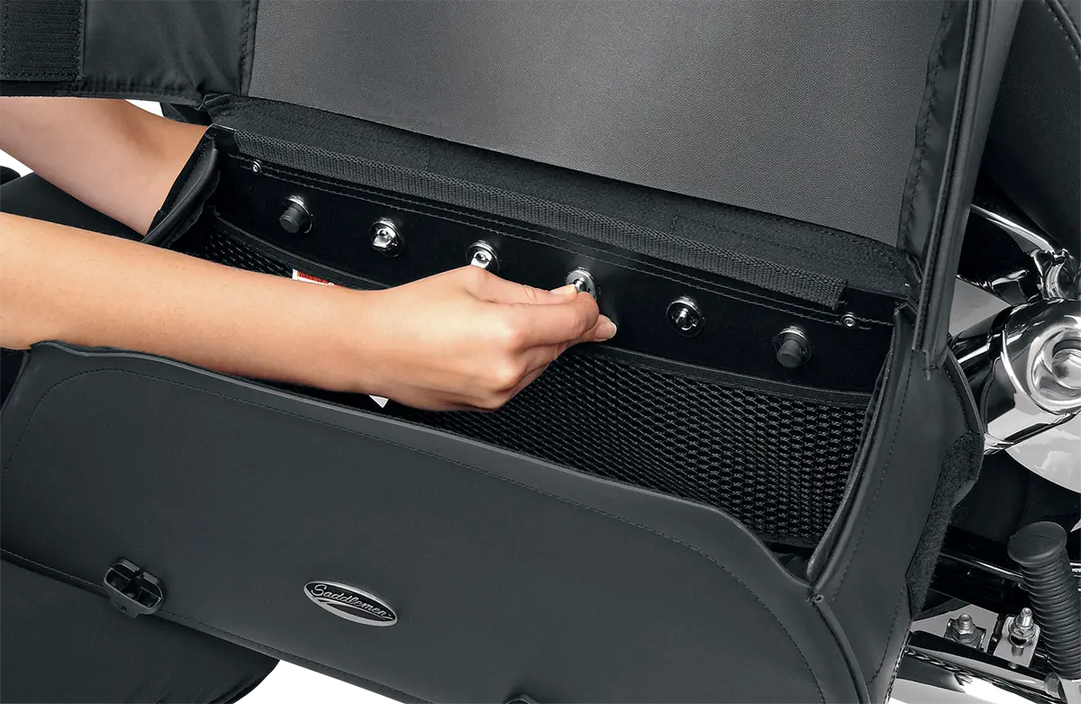 The Saddlemen Drifter™ Slant Saddlebags are expertly crafted using a combination of genuine leather, weather-resistant SaddleHyde™, chrome-plated brass buckles, and a robust plastic frame. These materials ensure that your belongings stay protected from the elements while providing a timeless aesthetic. The 1-1/2" chrome-plated buckles are paired with genuine leather straps, featuring lockable, quick-release hidden buckles for enhanced security and ease of access. The extra-strong plastic back is designed for seamless integration with the S4 Quick-Disconnect Mounting System, making installation and removal quick and easy. Measuring 24" in width, 11" in height and 7" in depth, these bags provide ample storage space for your essentials. Ride with confidence knowing your gear is secure and stylishly stowed with Saddlemen Drifter Slant Saddlebags.