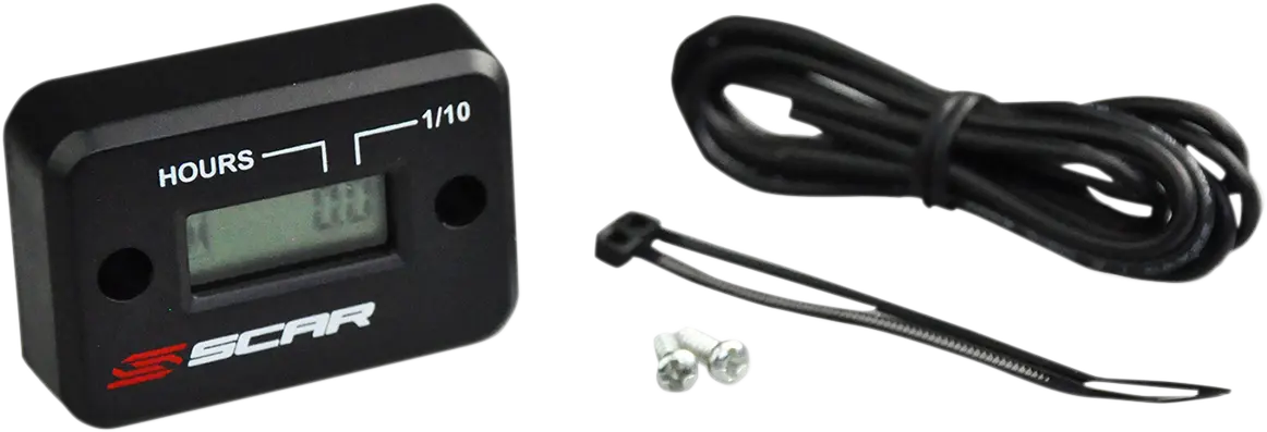 This digital hour meter precisely records the operating time of your engine, enabling you to schedule maintenance based on actual usage rather than estimates. The internal lithium battery eliminates the need for external power, simplifying installation. Simply mount the meter on any flat surface and start tracking your engine hours. The meter is compatible with a wide range of gasoline engines and includes decals for Honda, Kawasaki, Yamaha, Suzuki, and KTM, allowing for customized branding. Ensure optimal engine performance and longevity with accurate runtime data using the Scar Hour Meter. Perfect for motorcycles, ATVs, and other powersports vehicles.