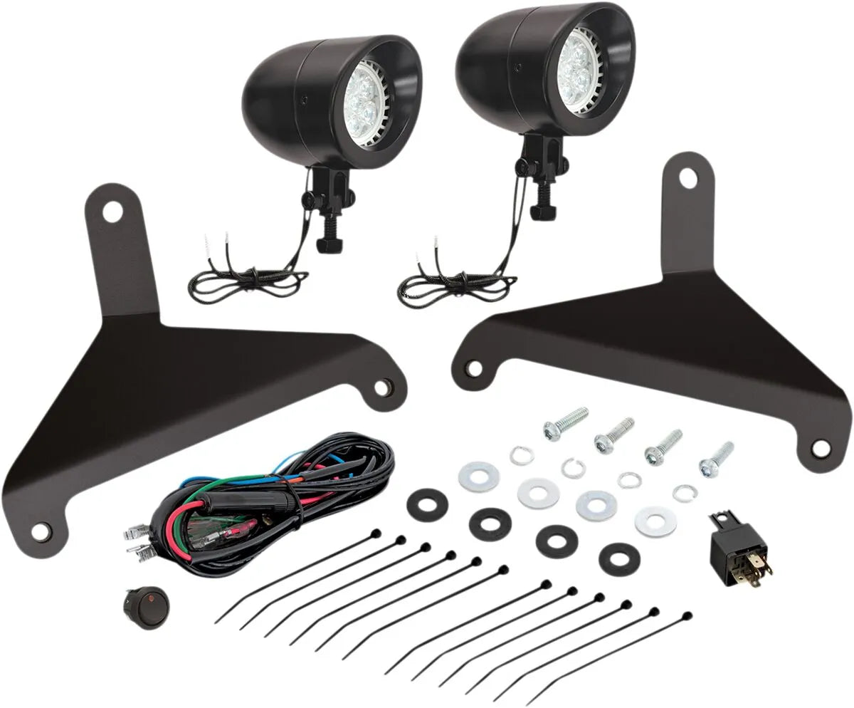 The Show Chrome LED Mini Driving Light Kit delivers exceptional performance and reliability. Featuring high-intensity LEDs, these spot lights produce 490 lumens with a 5000K color temperature, offering bright, white light that enhances visibility in all riding conditions. The dimmable design minimizes feedback to weak radio signals, ensuring uninterrupted communication and entertainment. Installation is straightforward, with brackets that easily secure to the front fairing using existing mounting holes. A dedicated wire harness, complete with a separate relay and switch, provides essential circuit isolation for safe and dependable operation. Constructed with high-quality materials and designed for lasting performance, this kit is an essential upgrade for any motorcycle enthusiast looking to improve their riding experience.