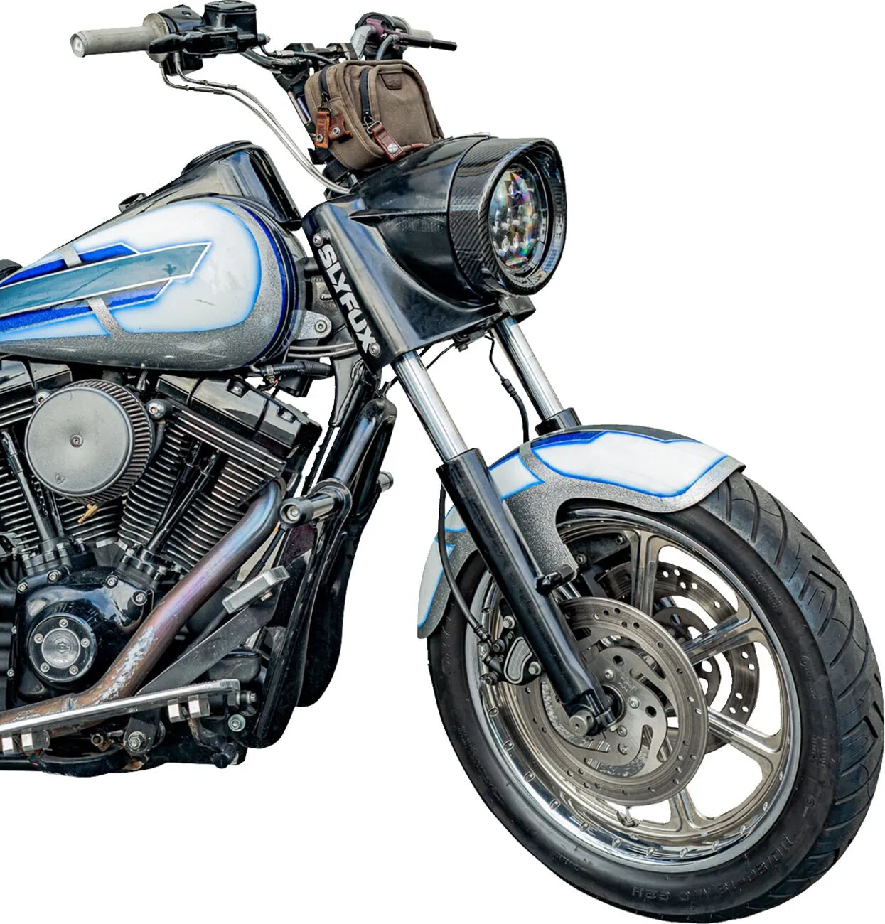 Upgrade your Harley Davidson's front end with the Slyfox Headlight Trim with Visor. This premium trim ring offers a sleek, aggressive look while providing added protection and style.