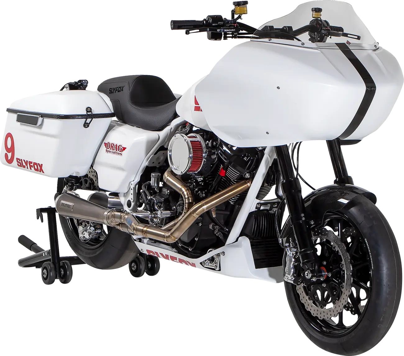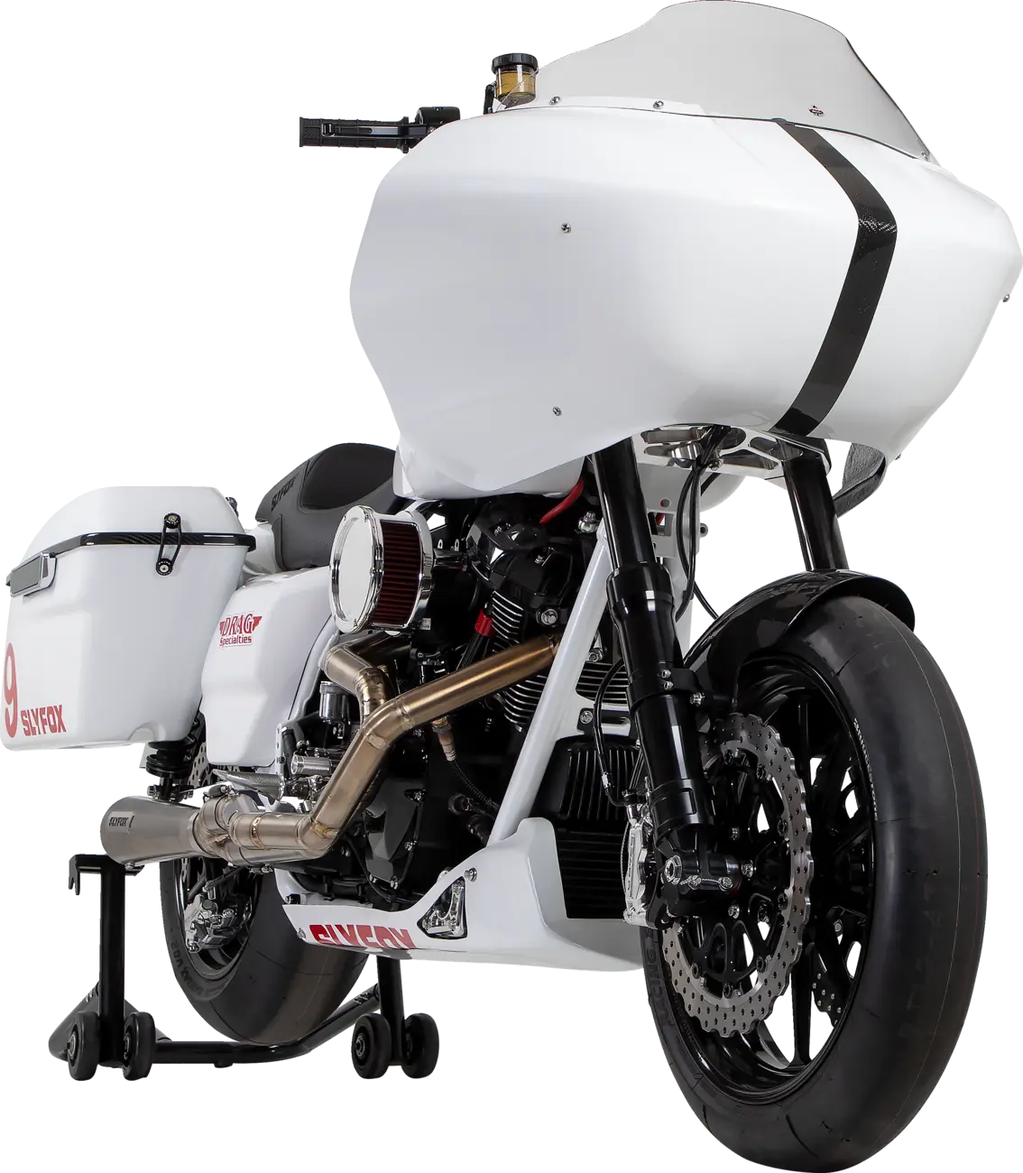 The Slyfox Track Pro Wheel is CNC machined from forged aluminum, ensuring superior durability and reduced weight. Its lightweight design features a back-cut rim lip, further minimizing rotational inertia for quicker acceleration and improved braking. This wheel is designed for dual disc brake systems without ABS and features a 3.25" x 5 bolt pattern, ensuring a secure and reliable fit. The anodized black finish provides a sleek, aggressive look that complements any motorcycle style. Proudly made in the USA, the Slyfox Track Pro Wheel delivers unmatched quality and performance, enhancing both the aesthetics and handling of your ride. The 17" diameter and 3.5" width offers the perfect balance of stability and agility. Installation is straightforward, allowing you to quickly experience the benefits of this premium wheel.