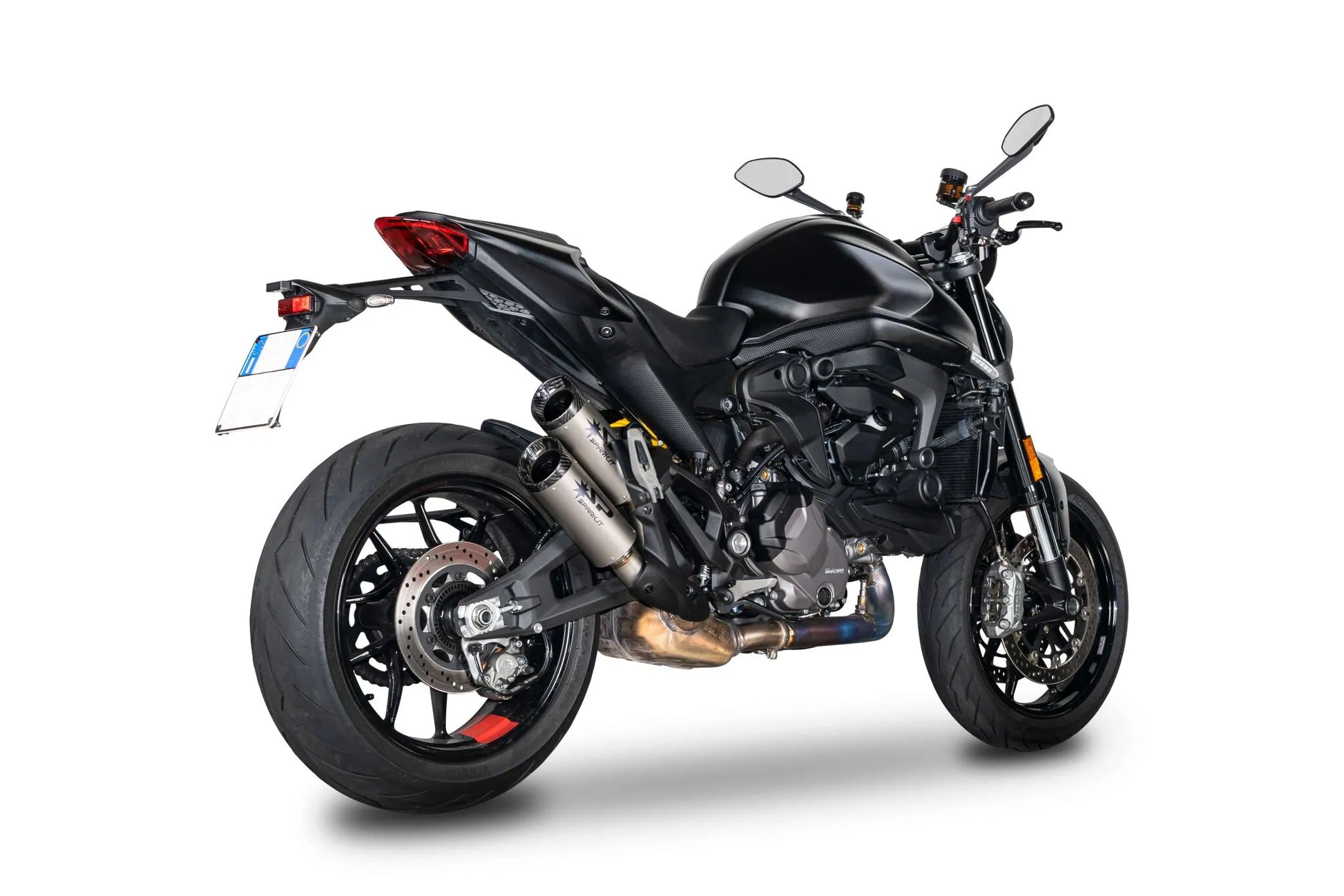 The Spark Dyno Slip-On Muffler is a fusion of pure design, cutting-edge technology, and exquisite detailing, making it the perfect accessory to elevate your motorcycle's style. This lightweight slip-on system features silencers crafted entirely from titanium, offering both performance and aesthetic appeal.