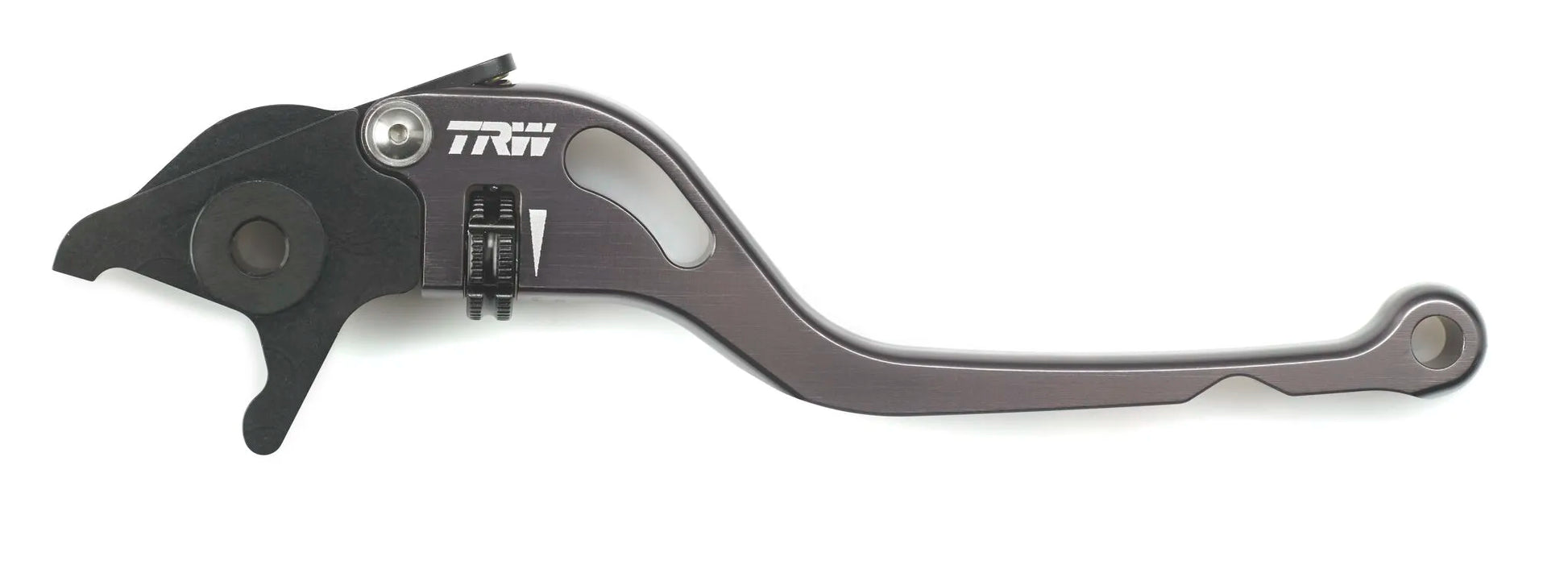 The TRW Street Brake Lever enhances your riding experience with its CNC-milled aluminum construction, ensuring both durability and a premium feel. The fine-adjustment wheel allows for precise calibration to suit your individual hand size and riding style, promoting optimal comfort and control. Its ergonomic design provides good modulation and excellent feedback, enabling confident braking in various conditions. In the event of an impact, the lever features a defined break-away point to minimize potential damage. Finished in a stylish titanium color, this lever adds a touch of sophistication to your motorcycle's cockpit. Installation is straightforward, making it an ideal upgrade for both enthusiasts and professional mechanics looking for enhanced brake lever performance.