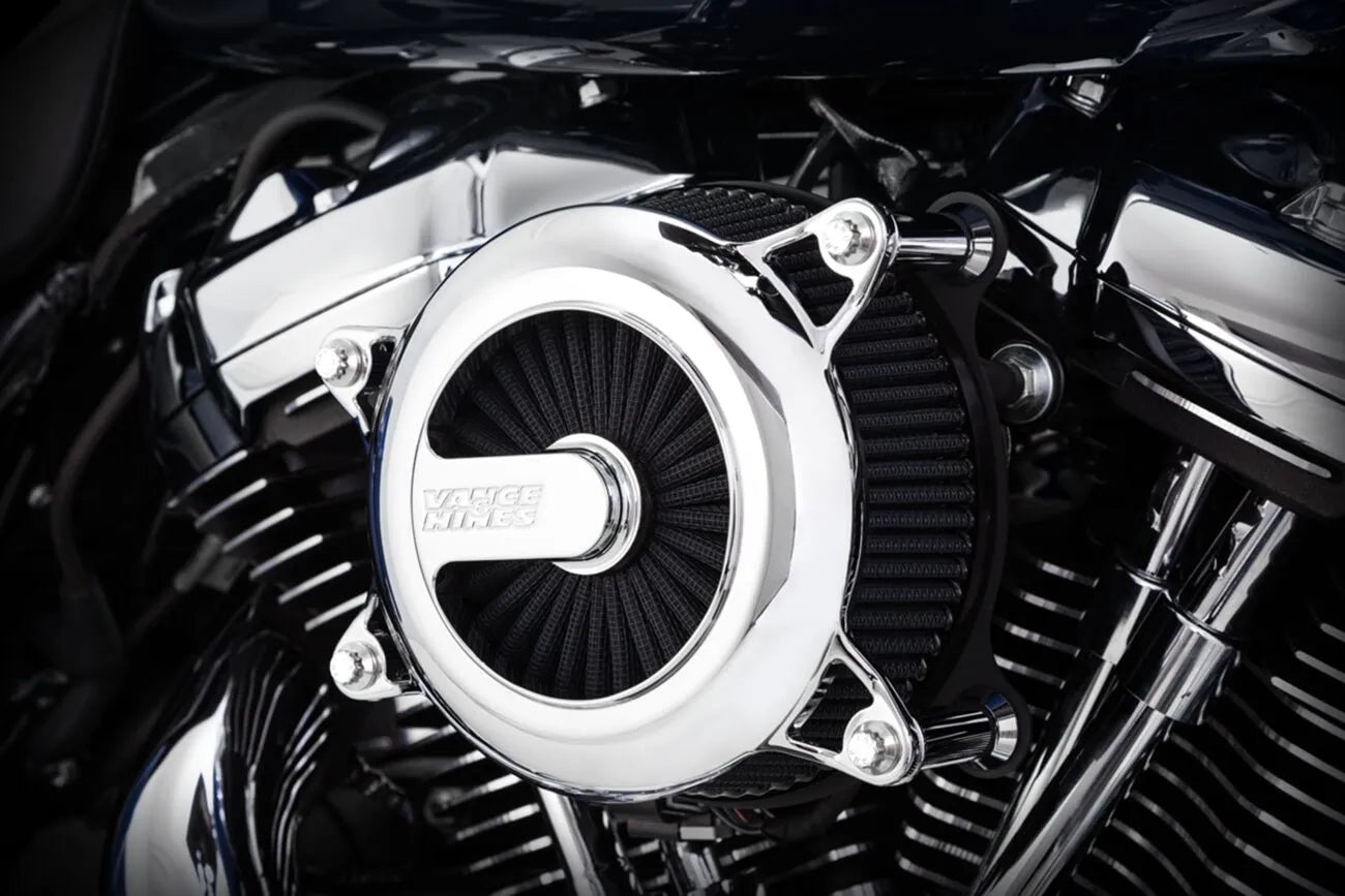 Upgrade your motorcycle's performance and style with the Vance & Hines VO2 Rogue Air Intake Kit. This kit is designed to provide a significant increase in horsepower and torque, ensuring a thrilling riding experience. The VO2 Rogue air intake echoes the classic rounded styling, making it a perfect complement to your motorcycle's aesthetics, especially when paired with the 2-into-1 Upsweep exhaust system.