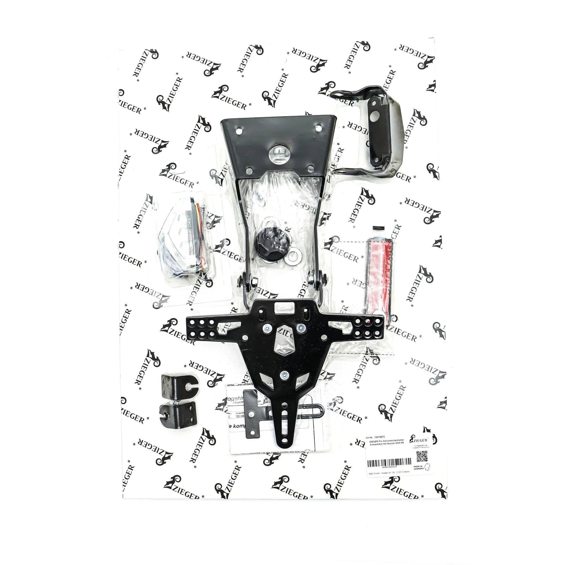 Upgrade your motorcycle's aesthetics with the Zieger Pro License Plate Holder. This durable and weatherproof license plate holder features a sleek, sporty design and provides a secure and stylish mounting solution for your license plate.
