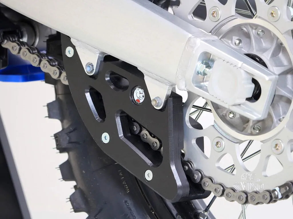 Opgrader din motorcykels kædebeskyttelse med AXP Racing kædeføring. Denne kædeføring er fremstillet af slidstærkt UHMW-plast og giver overlegen modstand og langvarig ydeevne, hvilket sikrer, at din kæde forbliver på sporet under krævende forhold.