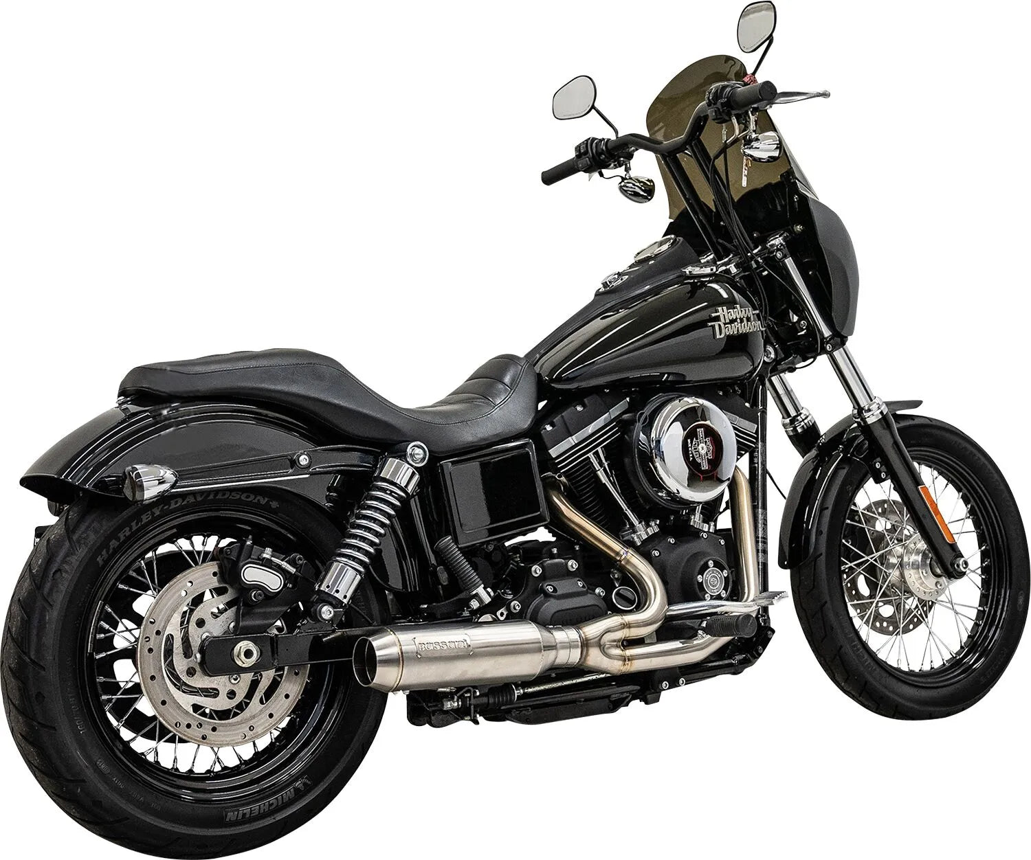 The Bassani Xhaust 2-into-1 Ripper Super Bike Exhaust System is engineered to deliver unparalleled performance. Featuring stepped headers that transition from 1-3/4" to 1-7/8", this system maximizes exhaust flow. The advanced inner collector further enhances performance, ensuring optimal power delivery throughout the RPM range. The upswept Super Bike style 4" muffler, constructed from stainless steel with an aluminum end cap, houses a removable conical performance baffle for a unique and aggressive sound. Full coverage stainless steel heat shields protect both the front and rear header pipes from heat. Hand TIG welding ensures exceptional quality and durability. This system is equipped with 18mm O2 bungs for tuning, and includes 12mm adapters and plugs for versatile fitment. Proudly made in the U.S.A.