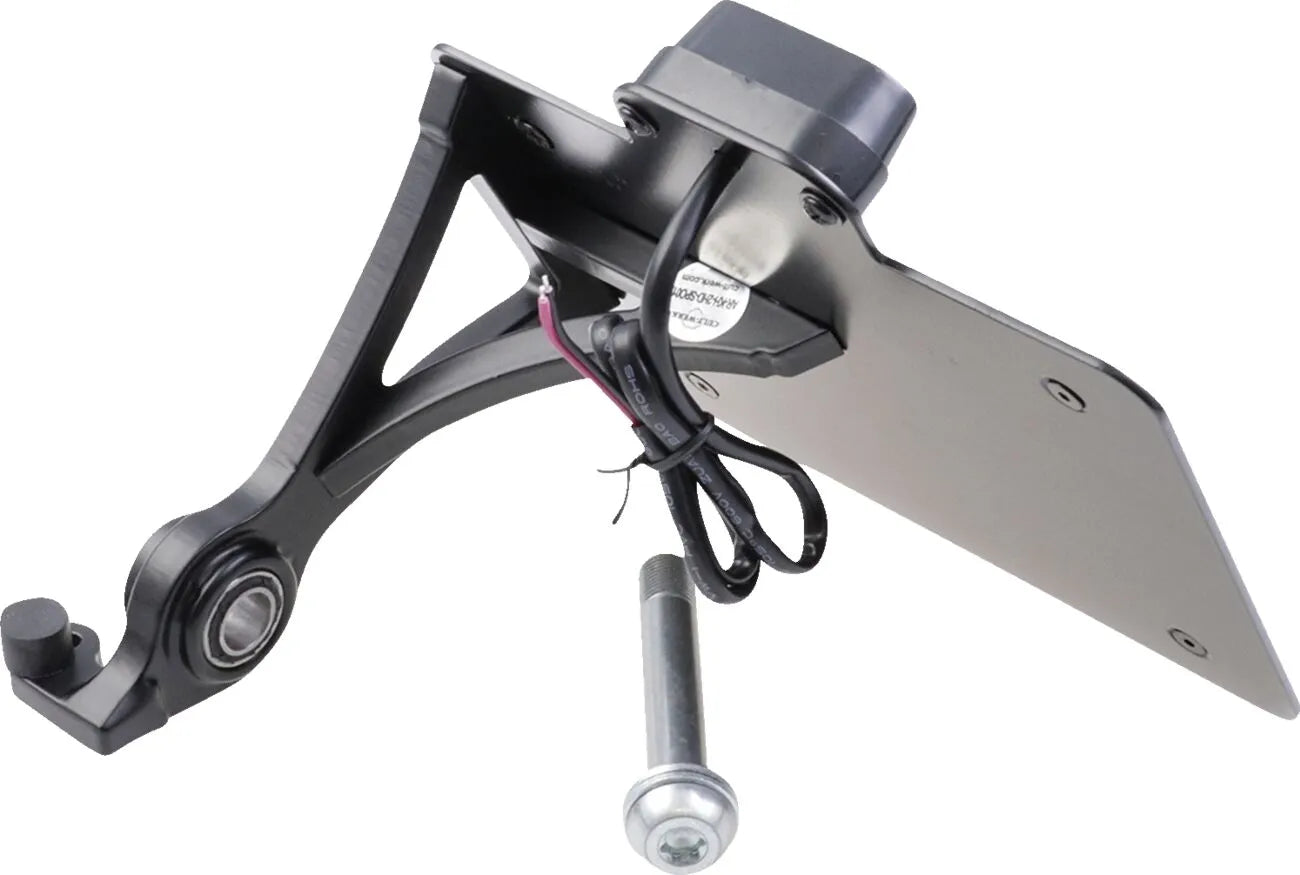 Crafted from premium steel, the Cult Werk License Plate Holder is CNC lasered for precision and then powder-coated in black for a long-lasting, corrosion-resistant finish. This ensures the holder can withstand the rigors of the road while maintaining a clean, modern look. The included LED license plate lighting features an E-test mark, guaranteeing compliance with legal requirements and providing excellent visibility in all conditions. Easy to install, this license plate holder is a perfect blend of form and function, designed to meet the needs of motorcycle enthusiasts and professionals alike. Improve the rear end of your motorcycle with this durable and stylish license plate solution. Get yours today!