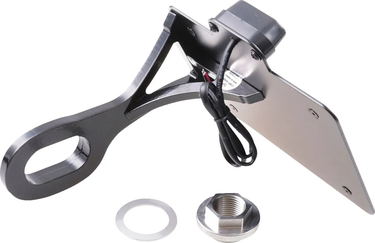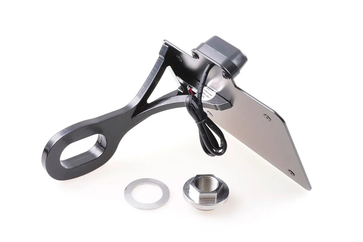Crafted from CNC-lasered, high-quality steel and finished with a robust black powder coating, this license plate holder is built to last. The precise manufacturing ensures a perfect fit and clean look on your bike. Installation is straightforward, instantly enhancing the rear profile of your motorcycle. Included is an LED license plate light featuring an E-test mark, guaranteeing compliance and visibility. The black finish adds a touch of modern aggression while seamlessly blending with any bike aesthetic. This license plate holder not only improves the appearance of your motorcycle but also ensures your license plate is securely and legally displayed.Features & highlights
