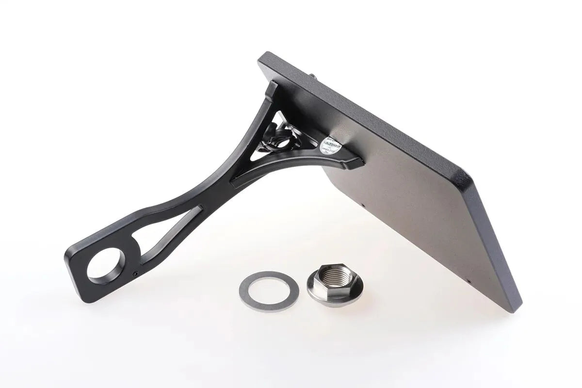Upgrade your motorcycle with the Cult Werk License Plate Holder. Crafted from high-quality steel, this holder offers both durability and a sleek aesthetic. CNC-lasered and powder-coated in black, it provides a modern and robust solution for your license plate mounting needs.