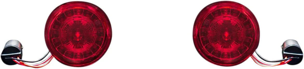 Custom Dynamics ProBEAM® røde LED-blinklys maksimerer ydeevnen gennem innovativ reflektorteknologi og LED'er af høj kvalitet i bilkvalitet. Den ydre ring, der er udstyret med 16 røde ProBEAM® LED'er, skaber en glat rød glorieeffekt, der fungerer som et stilfuldt kørelys. Som supplement til dette leverer de 12 midterste røde LED'er et bremse- og blinklys med fuld kontrast, hvilket giver enestående synlighed for andre førere. Disse blinklys er designet til nem installation og er en direkte erstatning for dine eksisterende pærer, hvilket sikrer en problemfri opgradering til lysere og mere pålidelig LED-belysning. Forbedr din motorcykels sikkerhed og æstetik med den overlegne kvalitet og ydeevne fra Custom Dynamics ProBEAM® LED-blinklys. Perfekt til Harley Davidson®-modeller med 1157-pærefatninger.