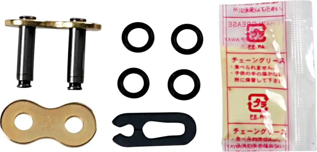 DID 525 VX3-forbindelsesleddet er designet til hurtig og nem vedligeholdelse og reparation af kæden. Det er fremstillet af stål af høj kvalitet og har en guldfinish for forbedret holdbarhed og visuel appel. Dette klipslignende forbindelsesled tilbyder en sikker og pålidelig forbindelse, der sikrer, at din kæde fungerer optimalt under krævende forhold. Uanset om du udskifter et beskadiget led eller monterer en ny kæde, giver dette forbindelsesled den perfekte pasform og funktion. Med sin X-ringtætning får du gavn af overlegen smøring og forlænget kædelevetid. Hold din motorcykel kørende problemfrit og sikkert med det pålidelige DID 525 VX3-forbindelsesled.