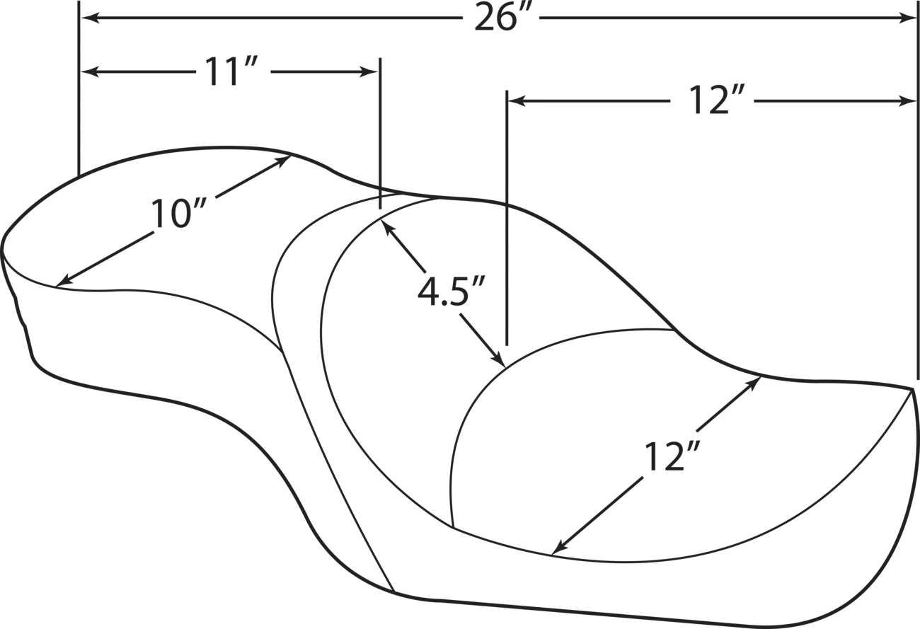 - Førersædets længde: 15-1/4" (38,5 cm)